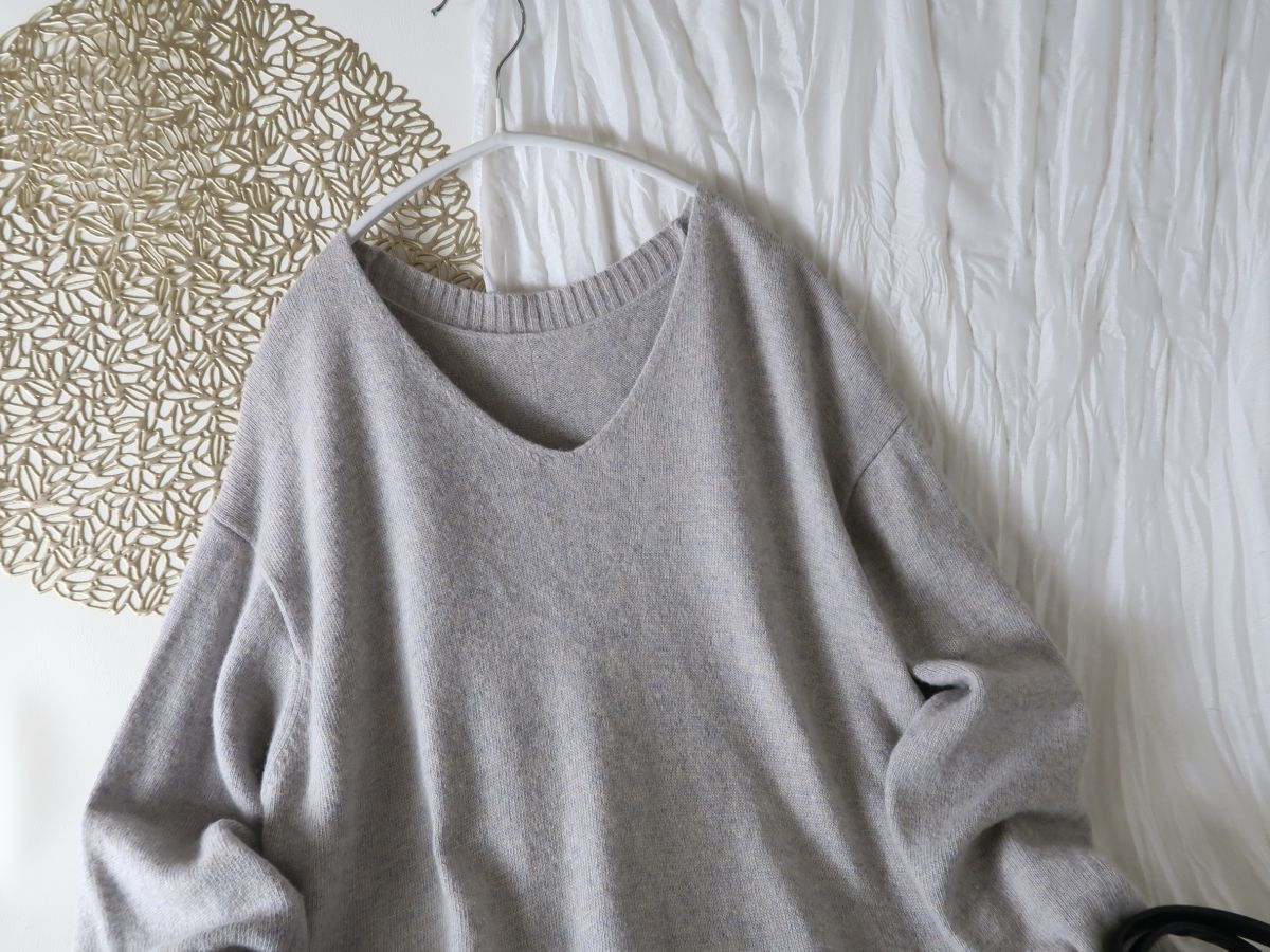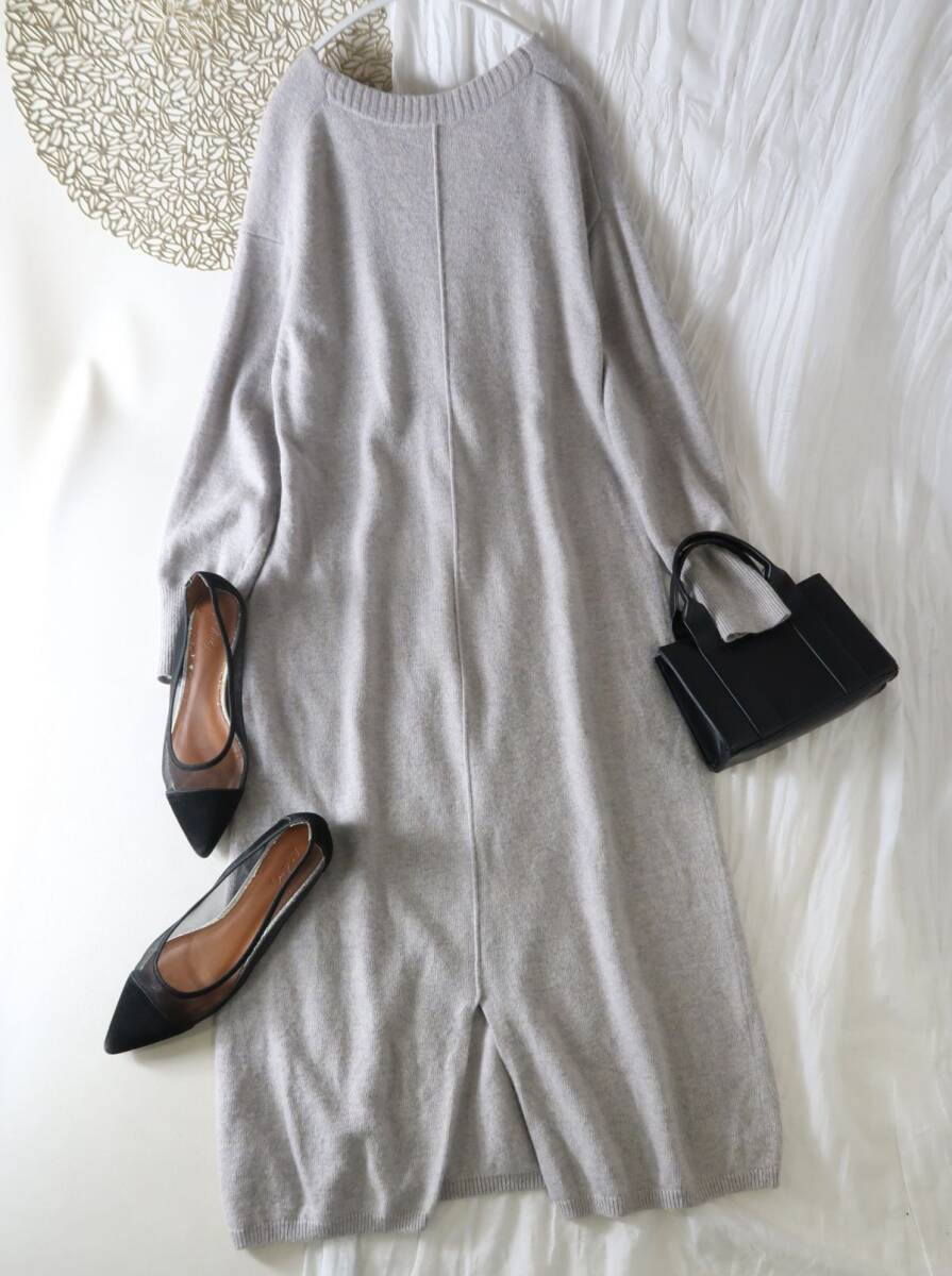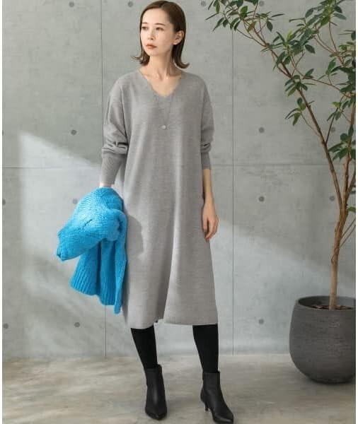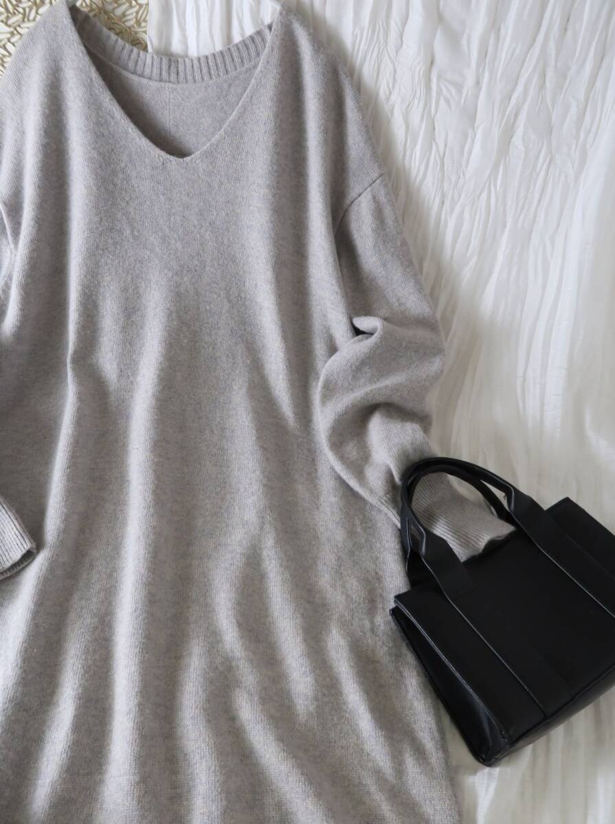 【上質素材で気品を放つ、カシミヤ混ラムウールVネックニットワンピース】