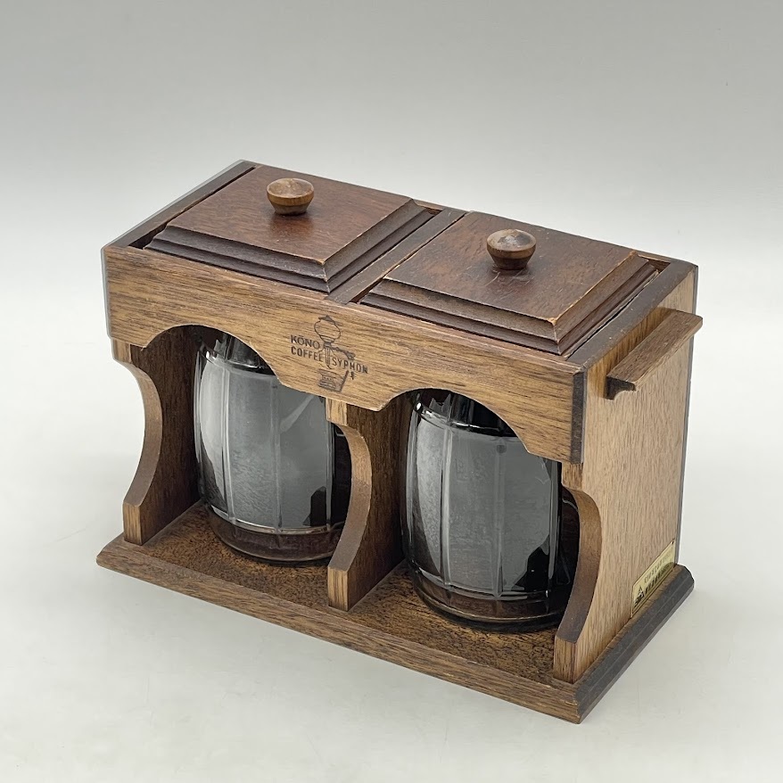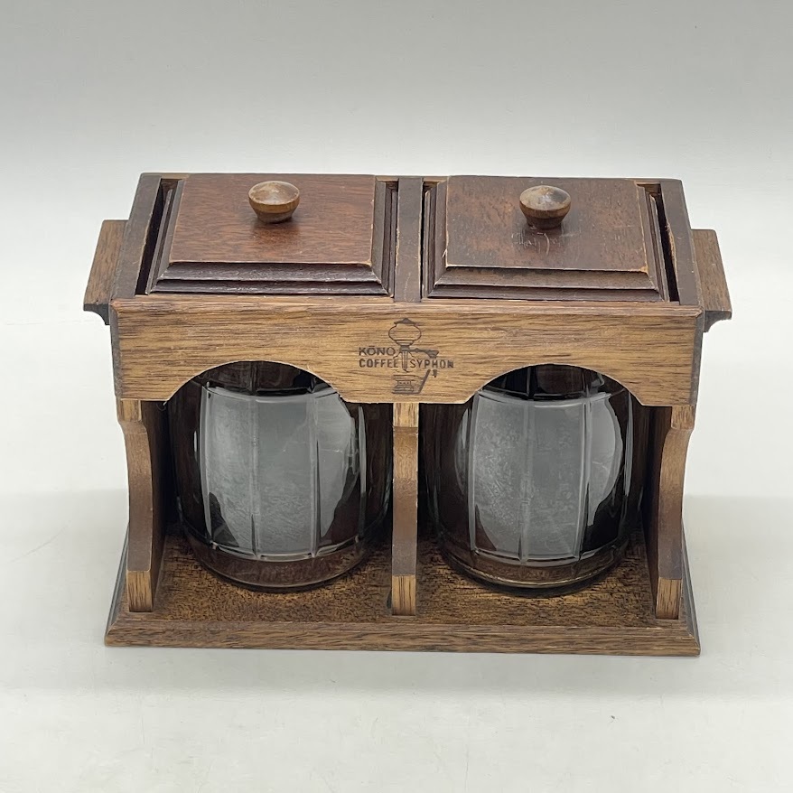 ★sm2476 コーノ キャニスター 木製 KONO 珈琲サイフォン コーヒー豆入れ ガラス瓶 ビーンズボトル 保存容器 ヴィンテージ★