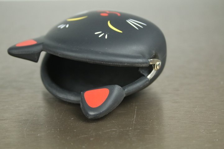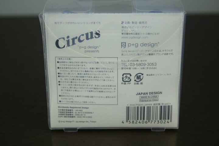 ピージーデザイン Circus 招き猫 黒 がま口 ポーチ 外箱無し