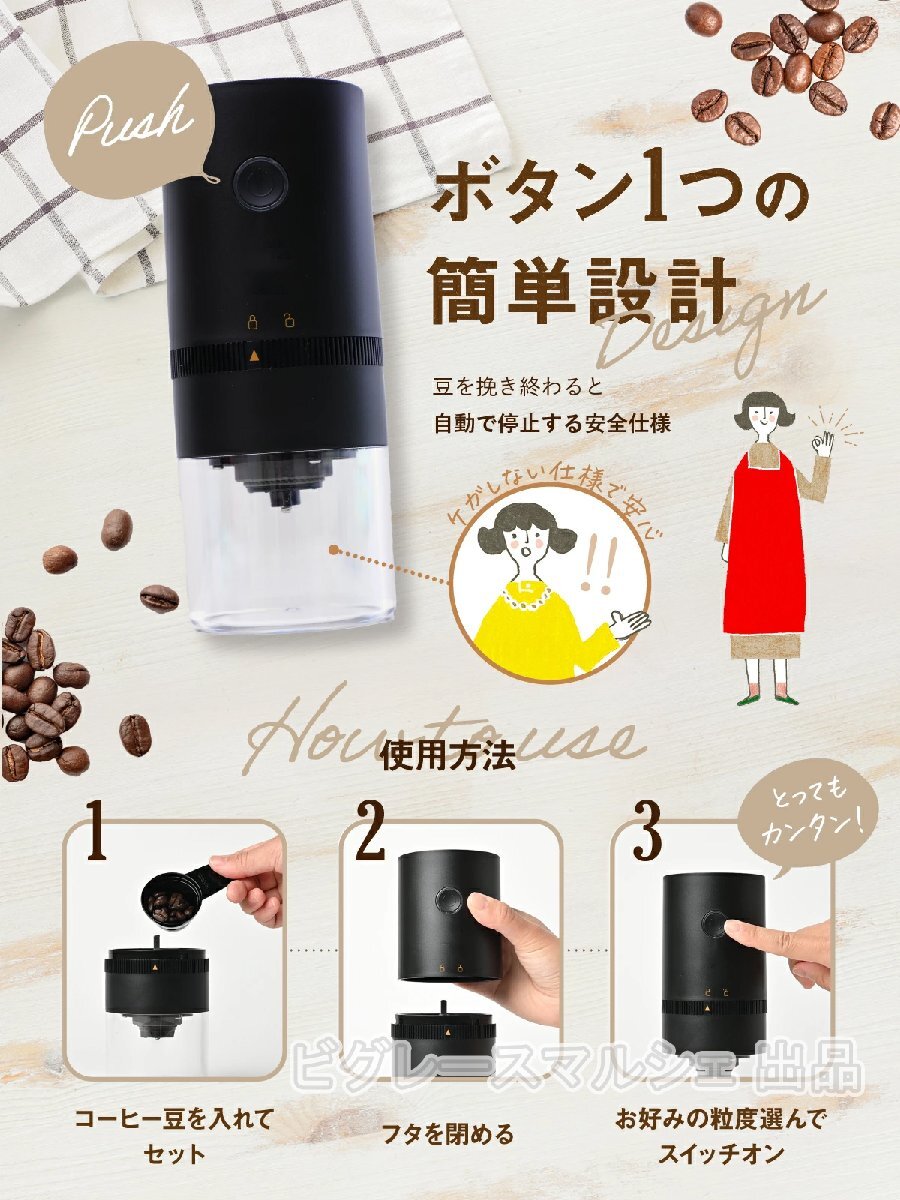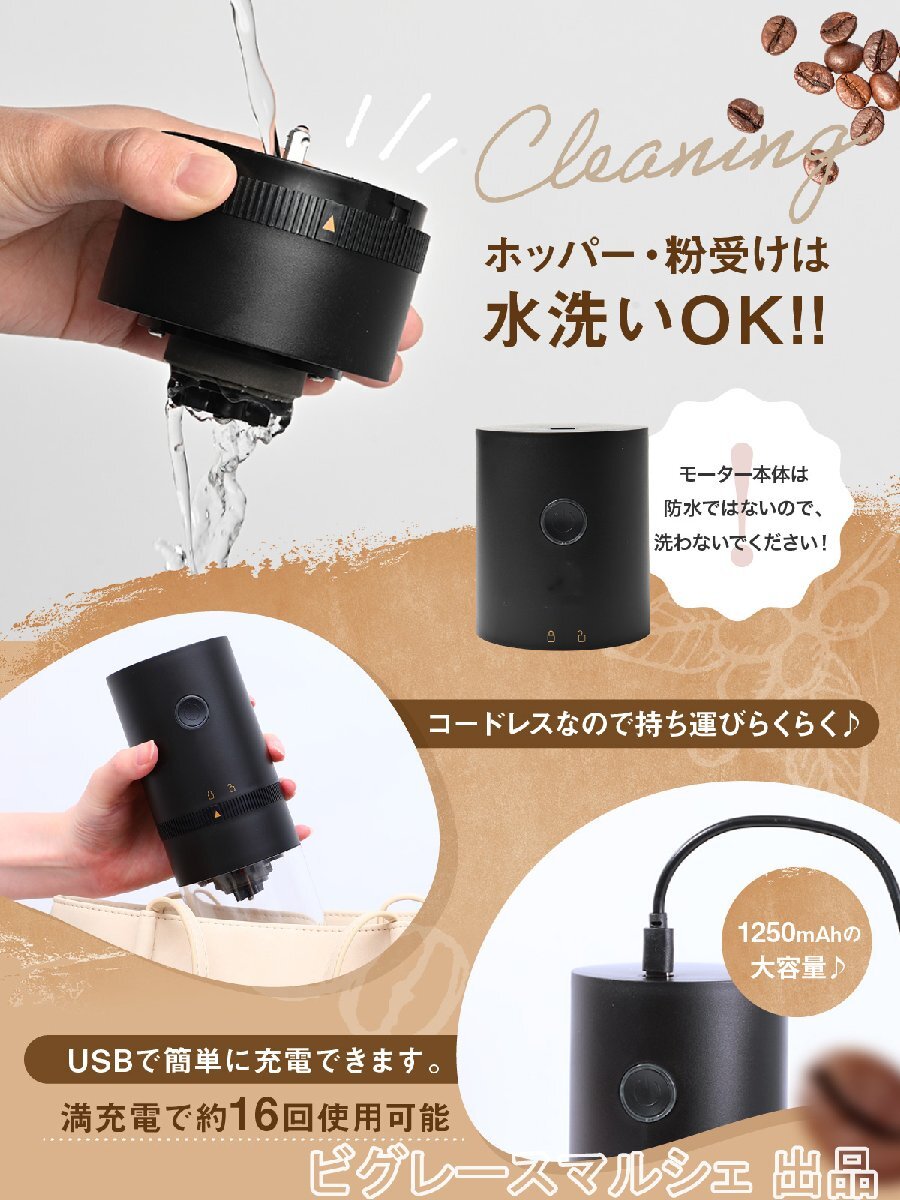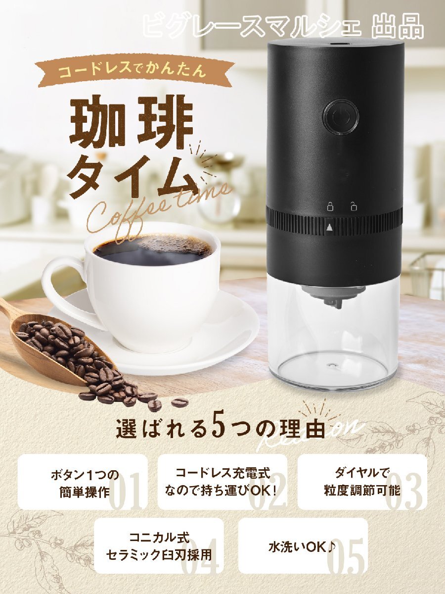 電動コーヒーミル 臼式 コニカル式 コードレス 電動 コーヒーグラインダー USB 充電式 水洗い可能 セラミック コーヒー 珈琲ミル hw1236