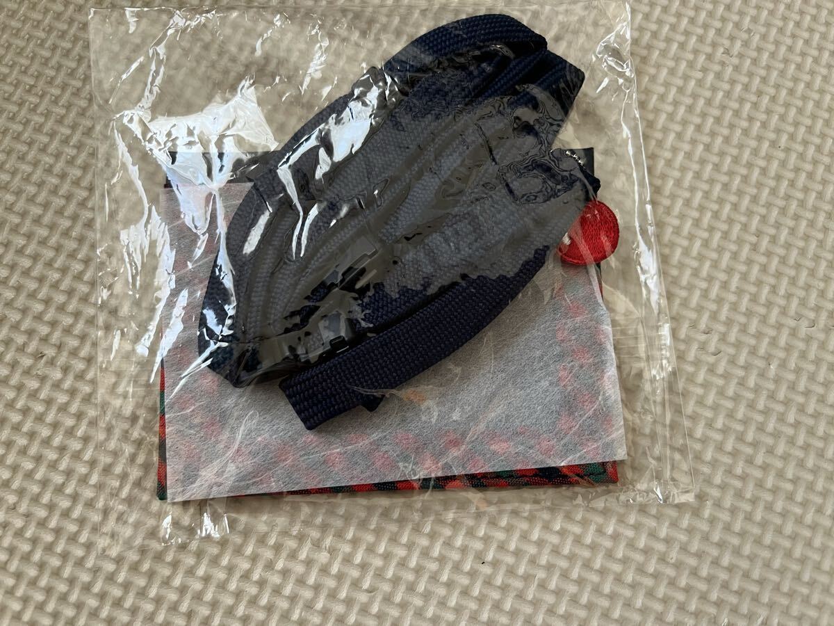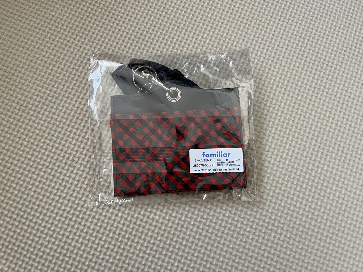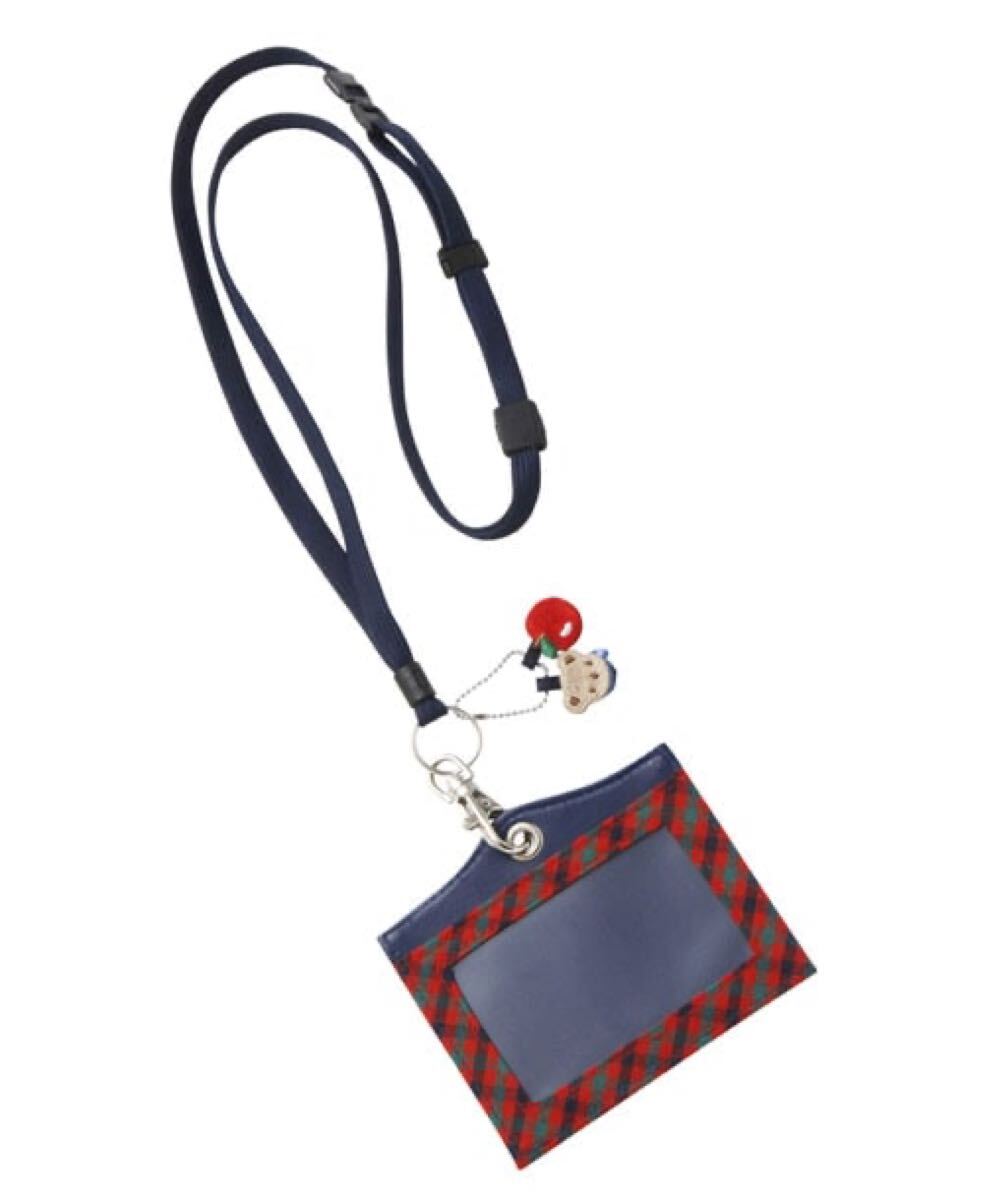ストラップに力が加わると外れる安全パーツ付きです。背面にはポケットも付いています。