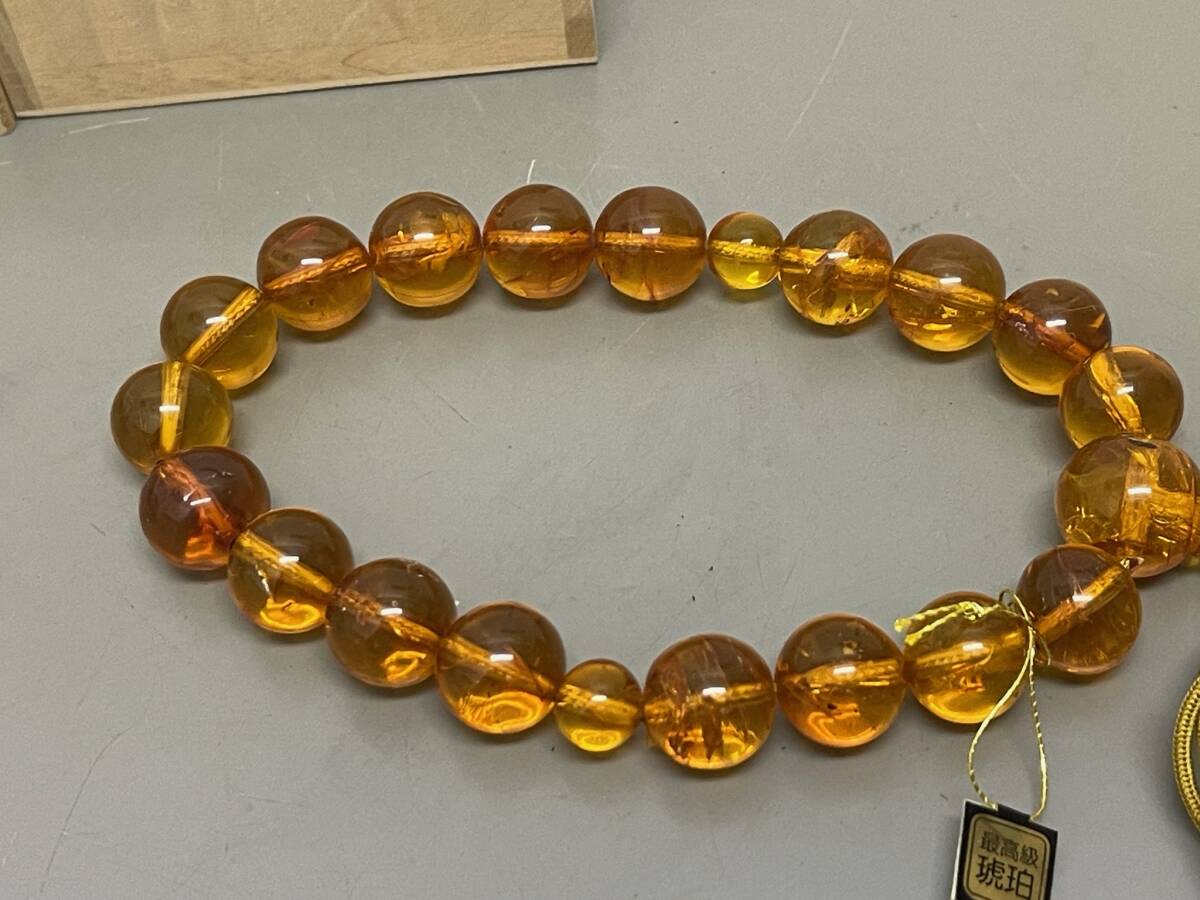 御念珠 本琥珀 最高級 数珠 共箱 木箱入り 仏教美術