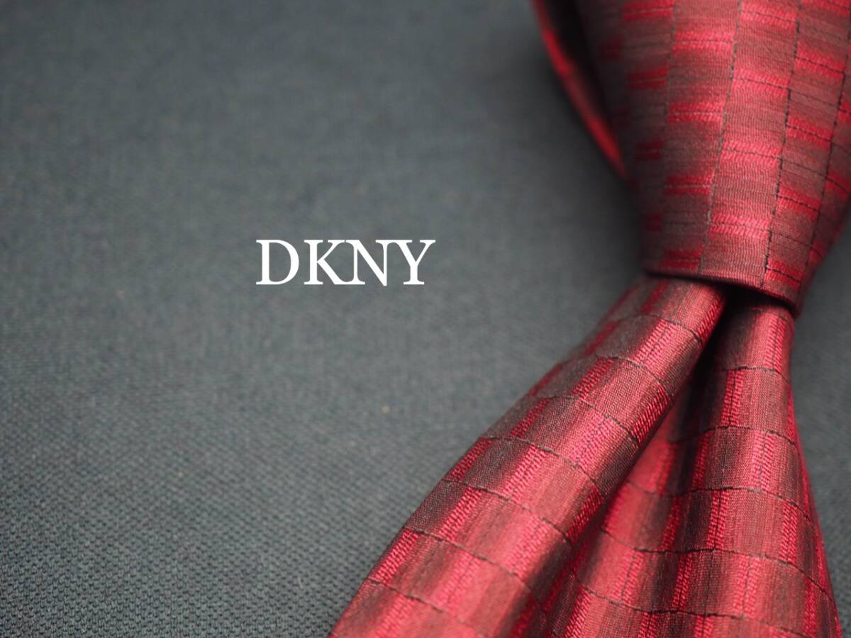 美品【DKNY ダナキャラン ニューヨーク】 G1409 赤ワイン系 SILK ブランド ネクタイ 古着 良品 転売 仕入