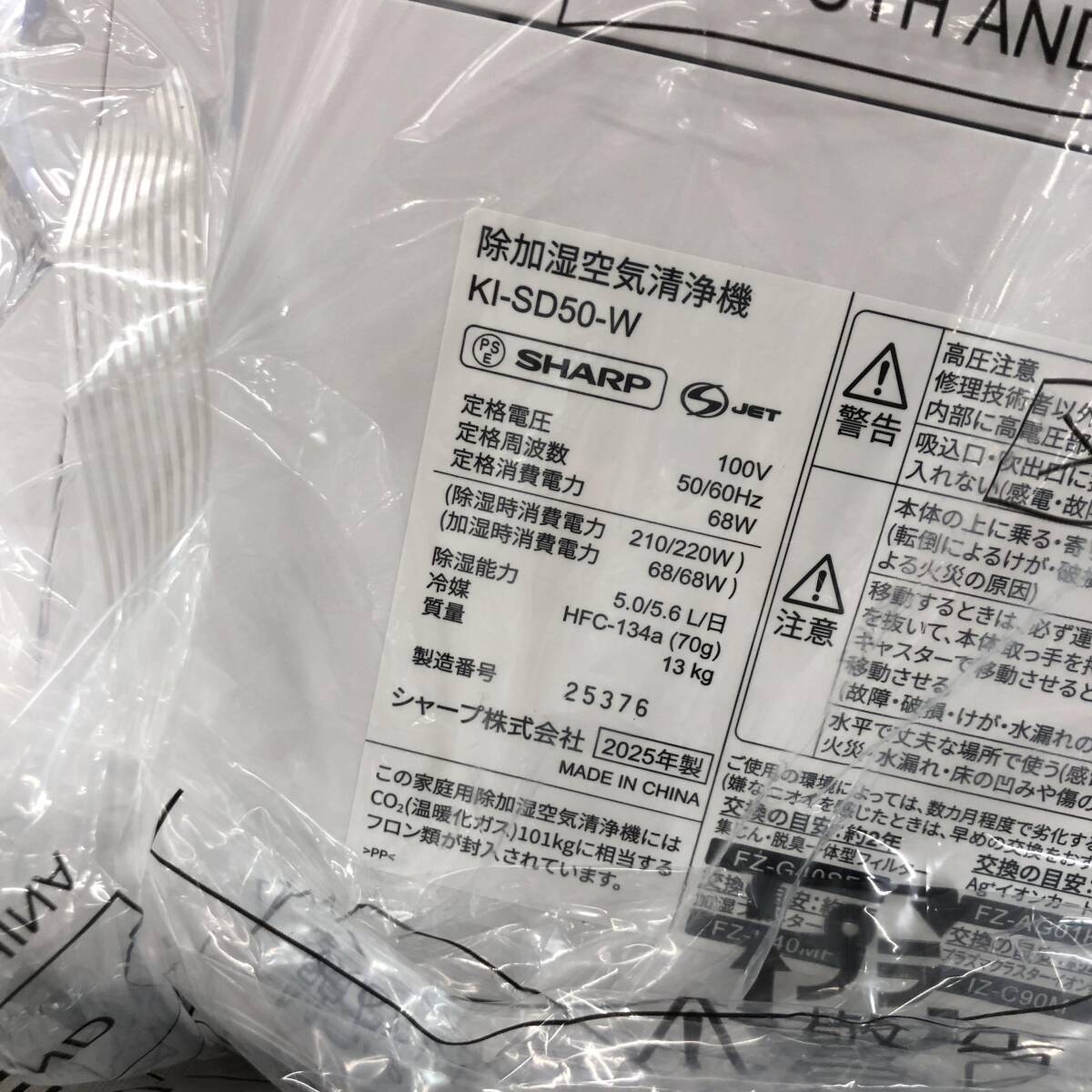 シャープ 衣類乾燥 除湿加湿空気清浄機 KI-SD50-W 除湿 加湿 空気浄化 プラズマクラスター25000 空気清浄 21畳 加湿量 約400ml/h 除湿 5.0/5.6L/日 衣類乾燥 キャスター付 コンパクト