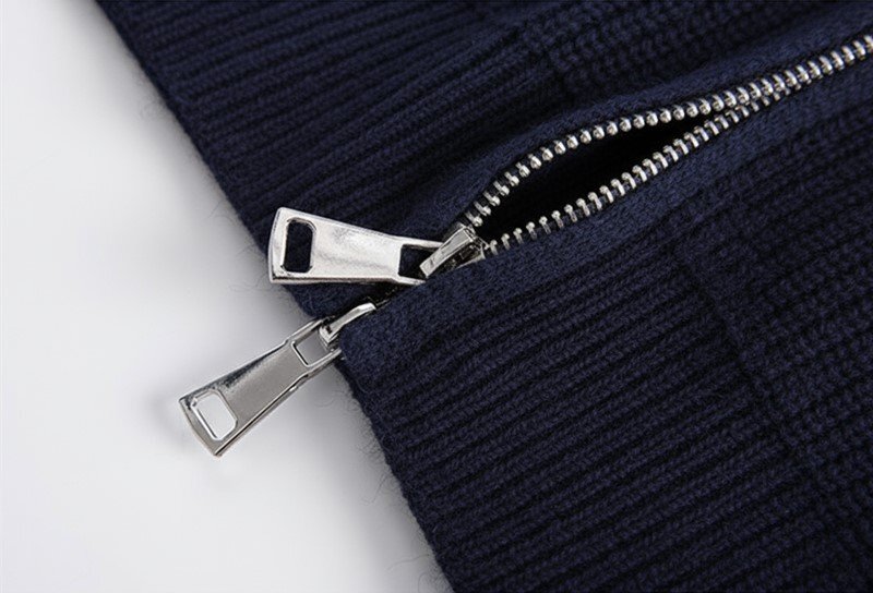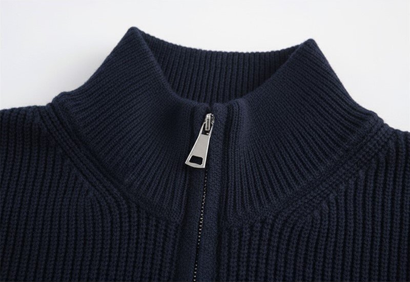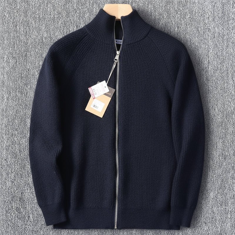 高級 新品 ウール混 ジップアップカーディガン メンズ 暖かい リブニット 秋冬 ジップアップ セーター ジャケット アウター 紺 T6030-XL