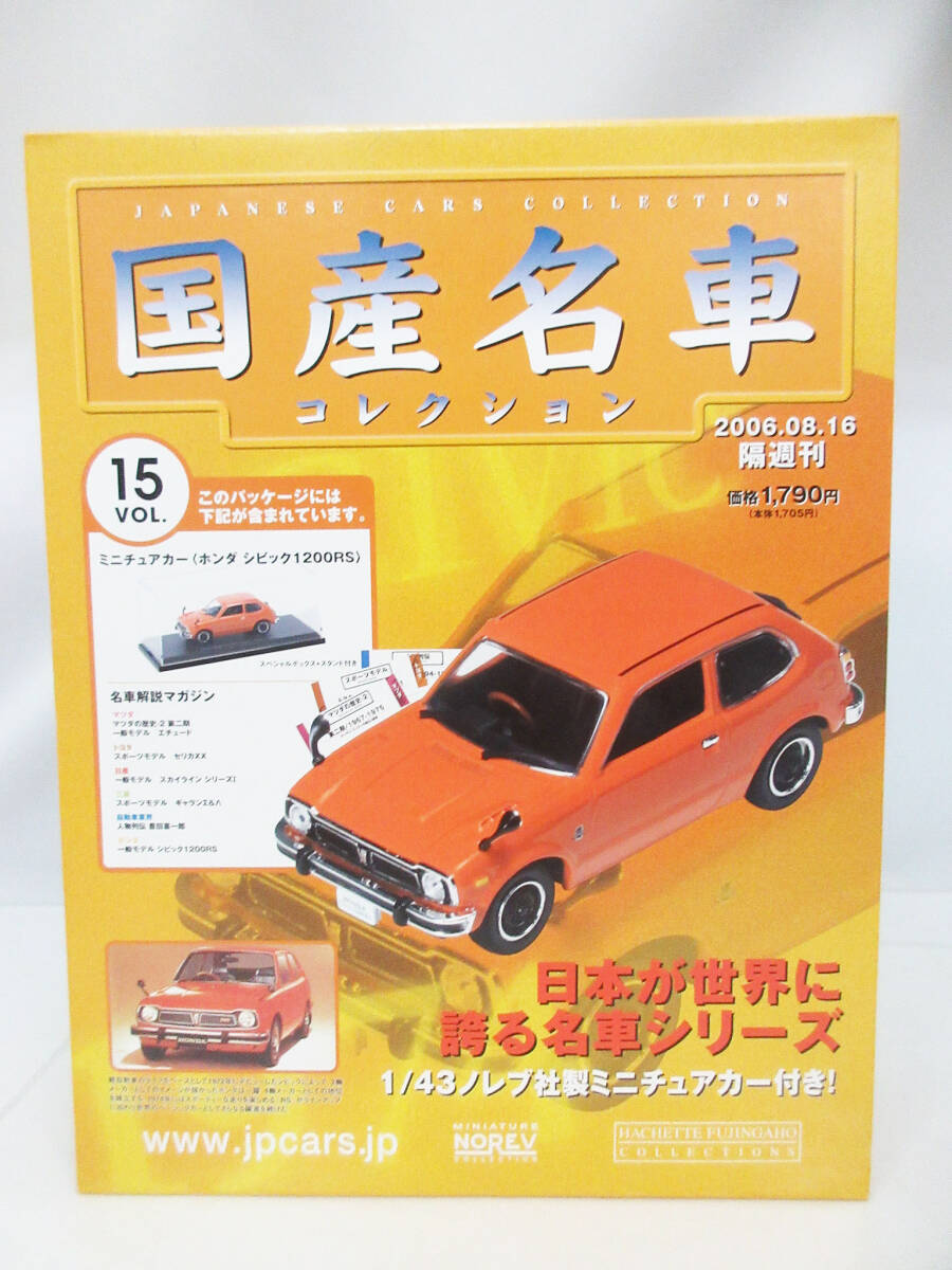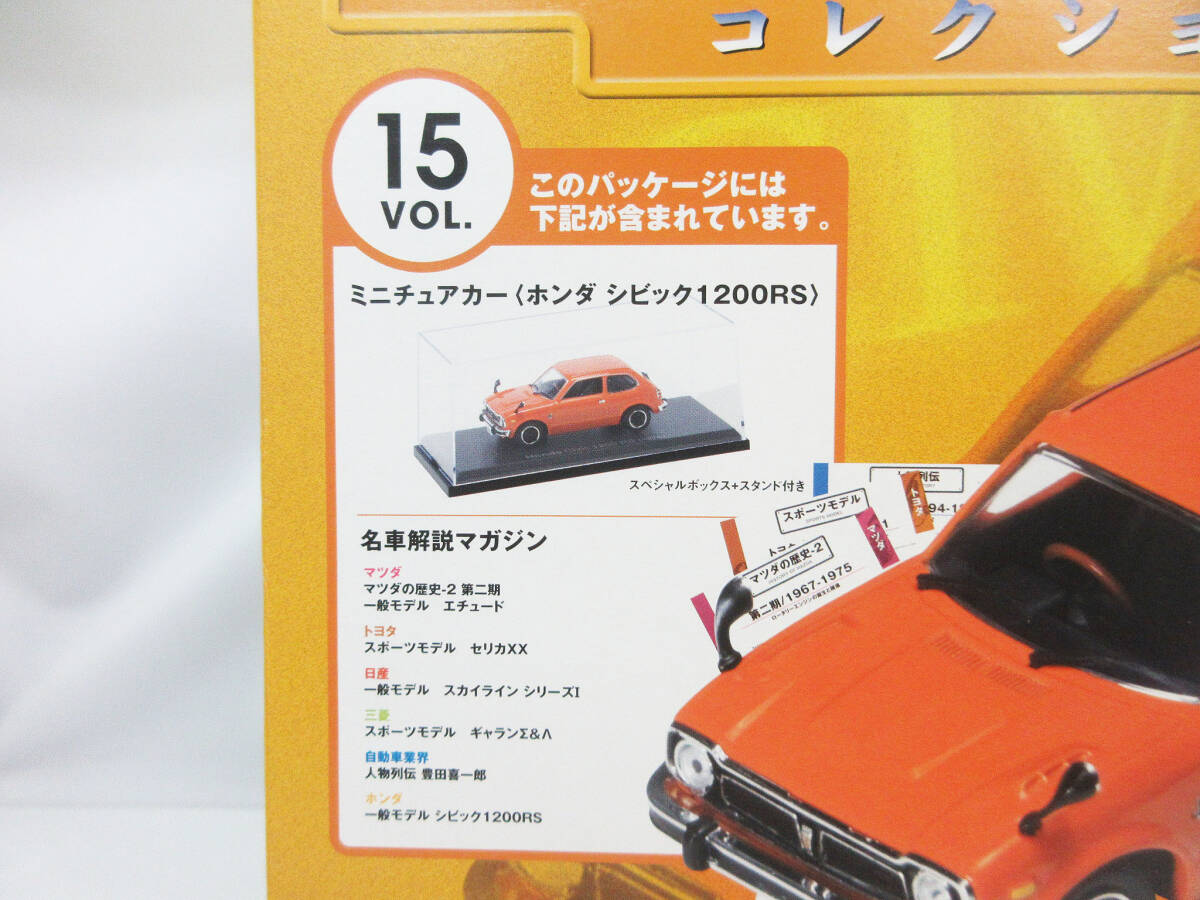 F1376【ミニチュアカー】アシェット 国産名車コレクション Vol.15 ホンダ シビック 1200RS 1/43★ケース 名車解説マガジン 付属★未開封