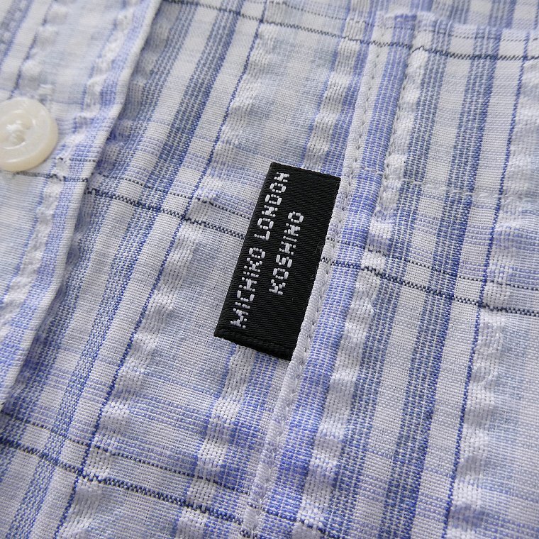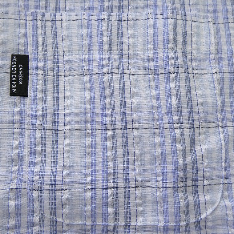 ・胸部分にワンポイントロゴの王道デザイン、MICHIKO LONDONらしいシャツに仕上がっております。 ・汗をかいてもベタつきにくく肌触りがサラっとして涼し気な質感のシアサッカー生地を使用。 ・パンツインが可能な着丈で、オフィスカジュアルにもおすすめの一枚です。 ・シンプルなレギュラーカラー、センターボックスプリーツ、左胸ポケットあり仕様です。 |