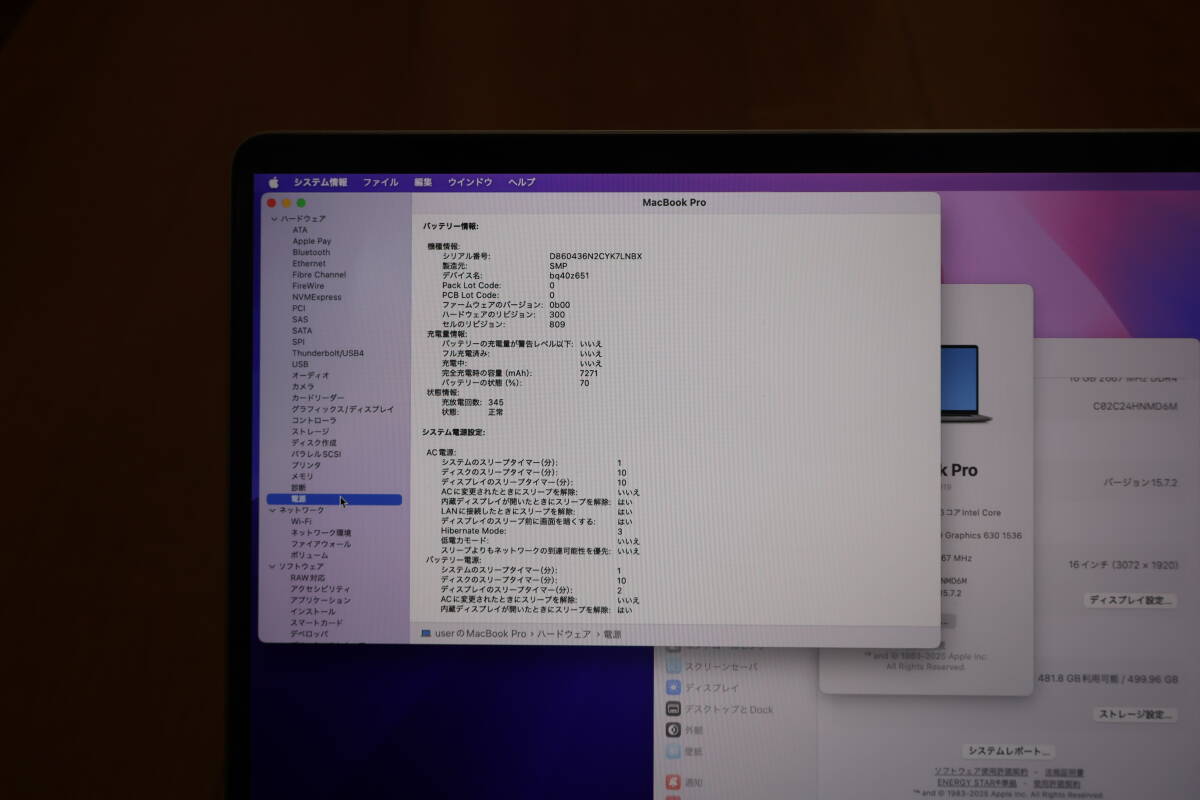 | 商品説明 | MacBookProRetina 16インチ 2019年 スペースグレー のモデルです。 本体のみの出品です。 OSは MacOS Sequoia がクリーン インストールされています。 中古なので多少の傷、汚れ、キーボードの テカリが見られます。 薄い凹みが見られます。 写真でご確認ください。 バッテリーの充放電回数は 371回です。 正常動作を確認しています。 詳細スペックは下記となっています。 発売時期Late 2019 CPU第9世代 Core i7 2.6GHz/6コア メモリ容量16GB メモリ規格DDR4 PC4-21300 画面サイズ16 インチ 解像度 3072x1920 ディスプレイRetinaディスプレイ SSD:512GB Thunderbolt3(USB3.1 Gen2 Type-C) x4 Webカメラ Touch ID Touch Bar 無線LANIEEE802.11a/b/g/n/ac BluetoothBluetooth 5.0 カラースペースグレイ |