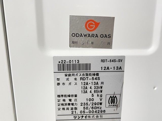 手渡し歓迎 動作保証 Rinnai リンナイ RDT-54S-SV 2021年製 乾太くん 乾燥容量5kg 都市ガス用 スタンド付き / 301947 |