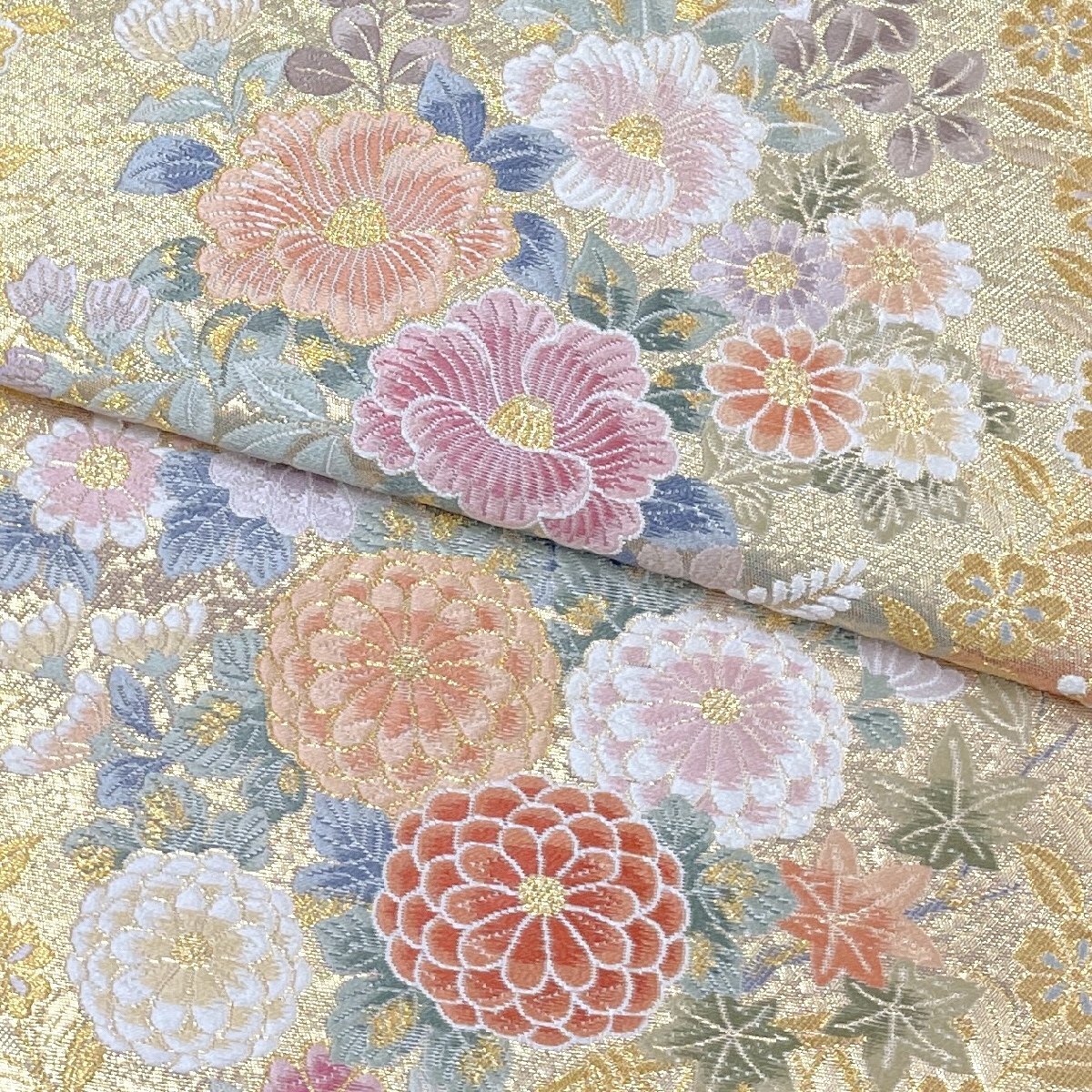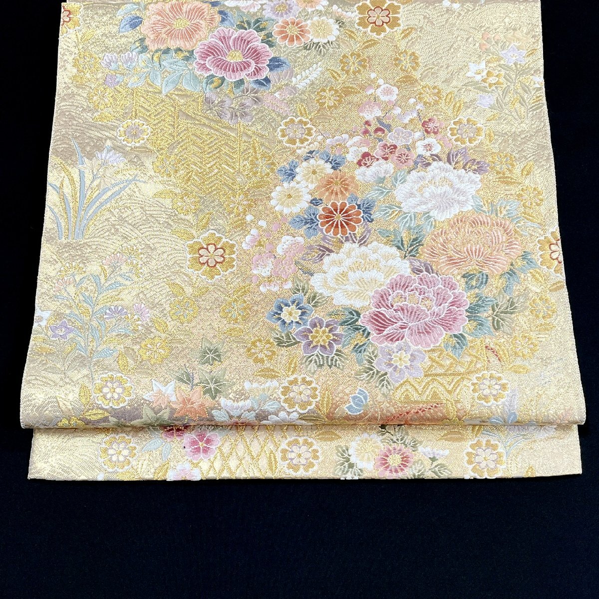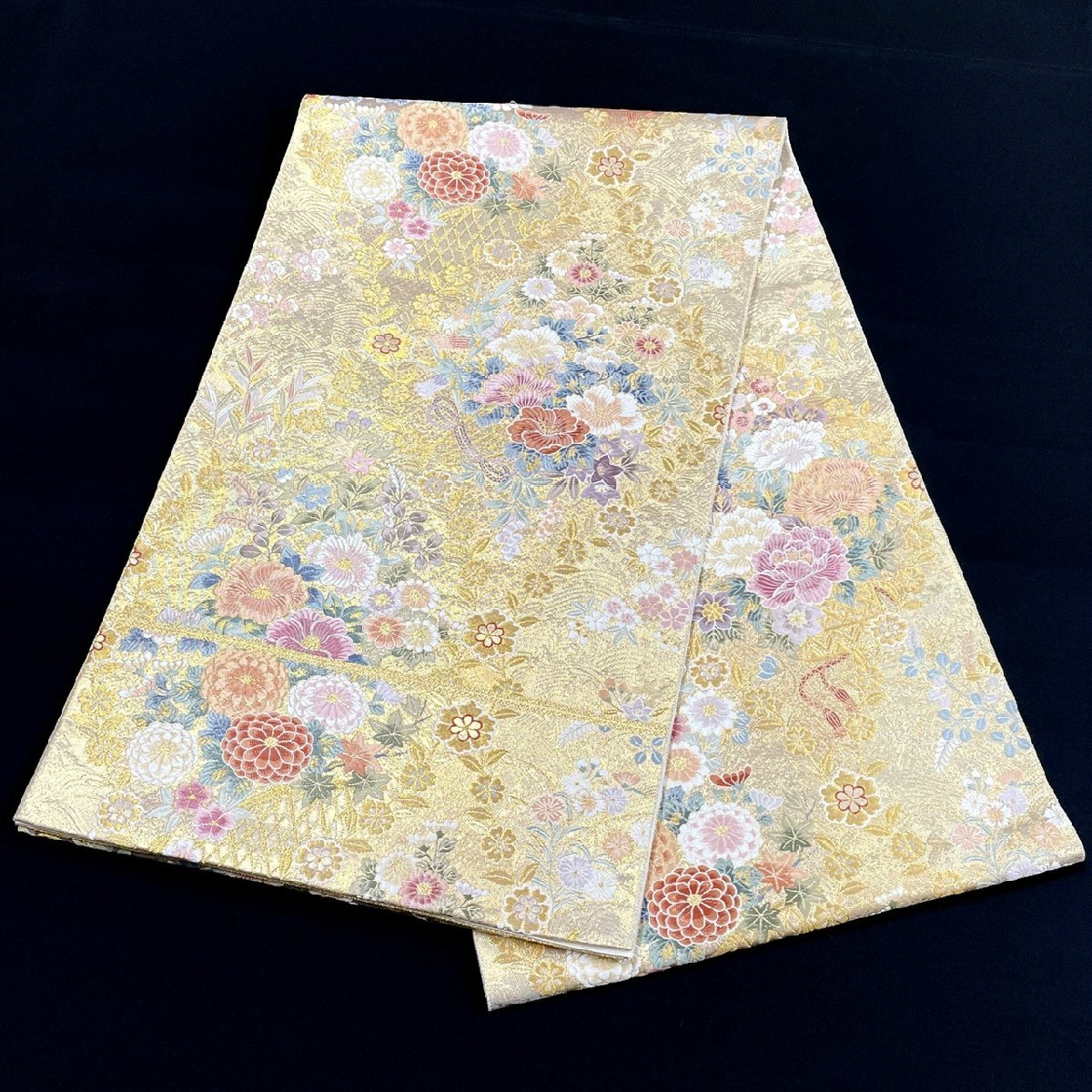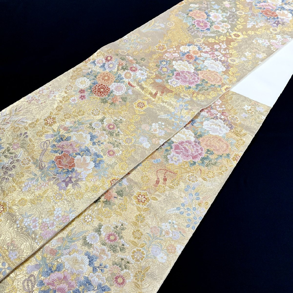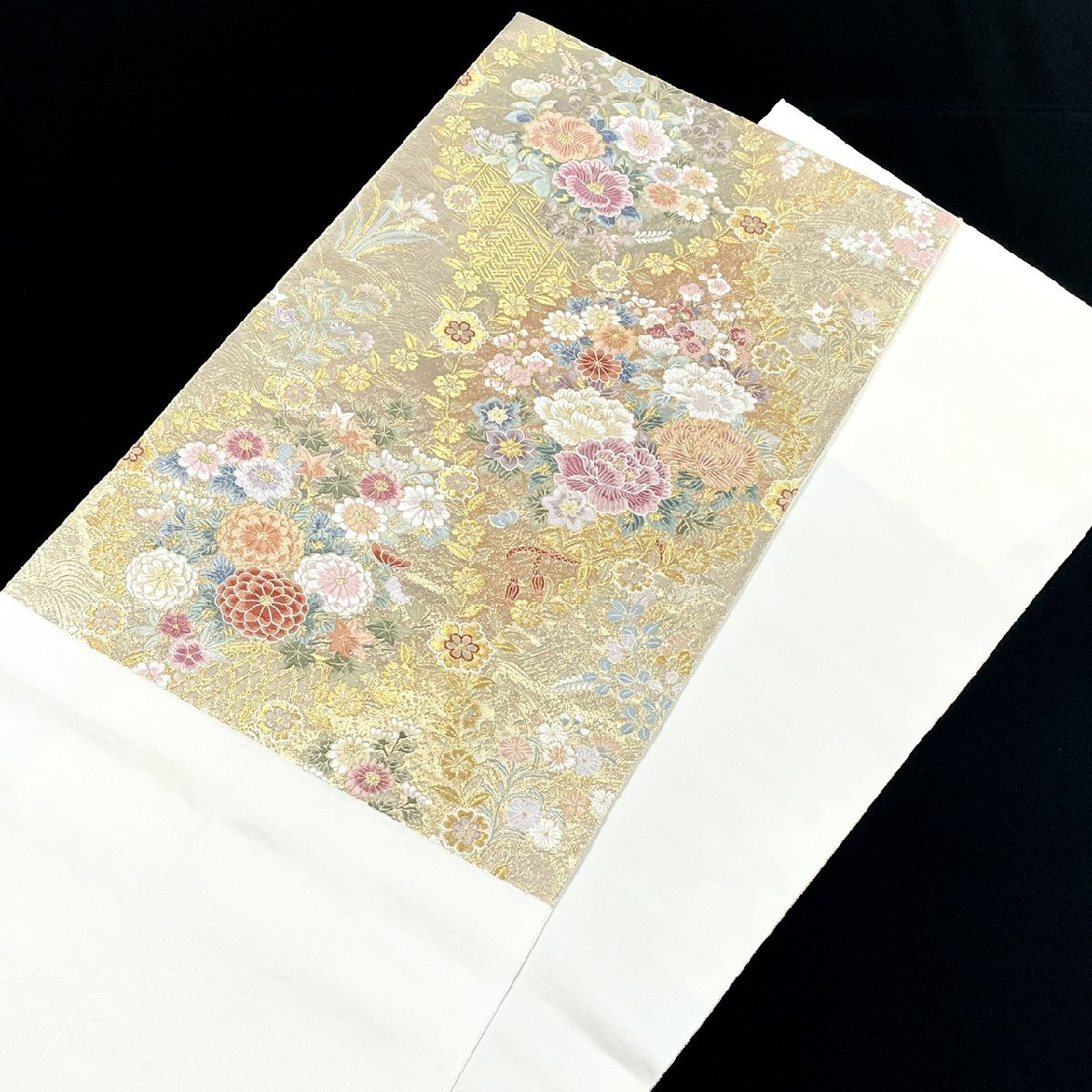着物月花 引箔 品のある花 袋帯 六通柄 正絹 金銀糸 帯芯無し仕立て ob7598