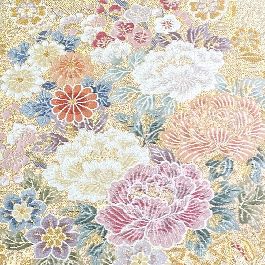 品のある花が描かれた袋帯でございます。