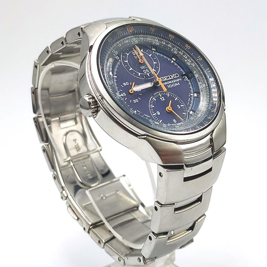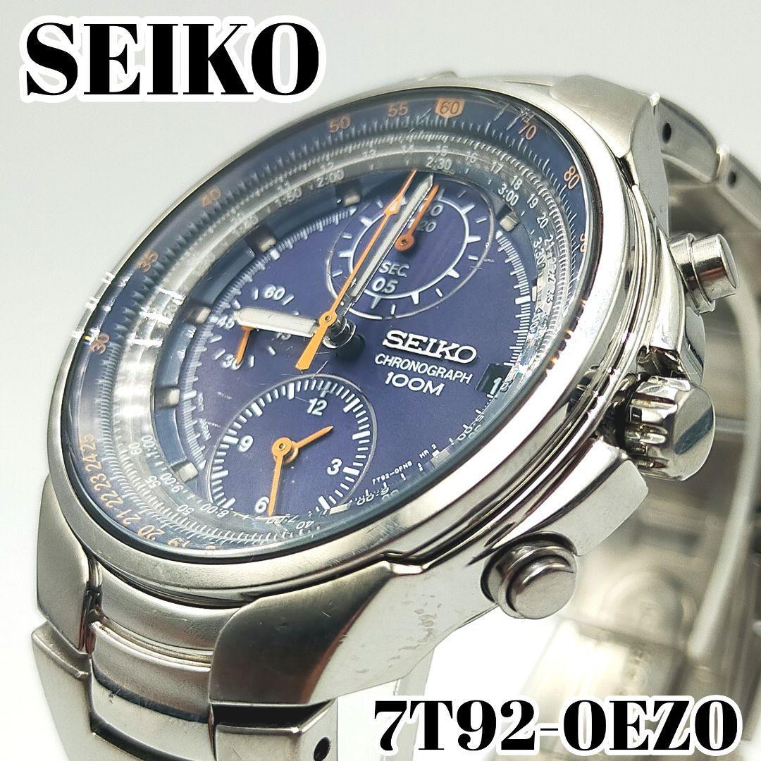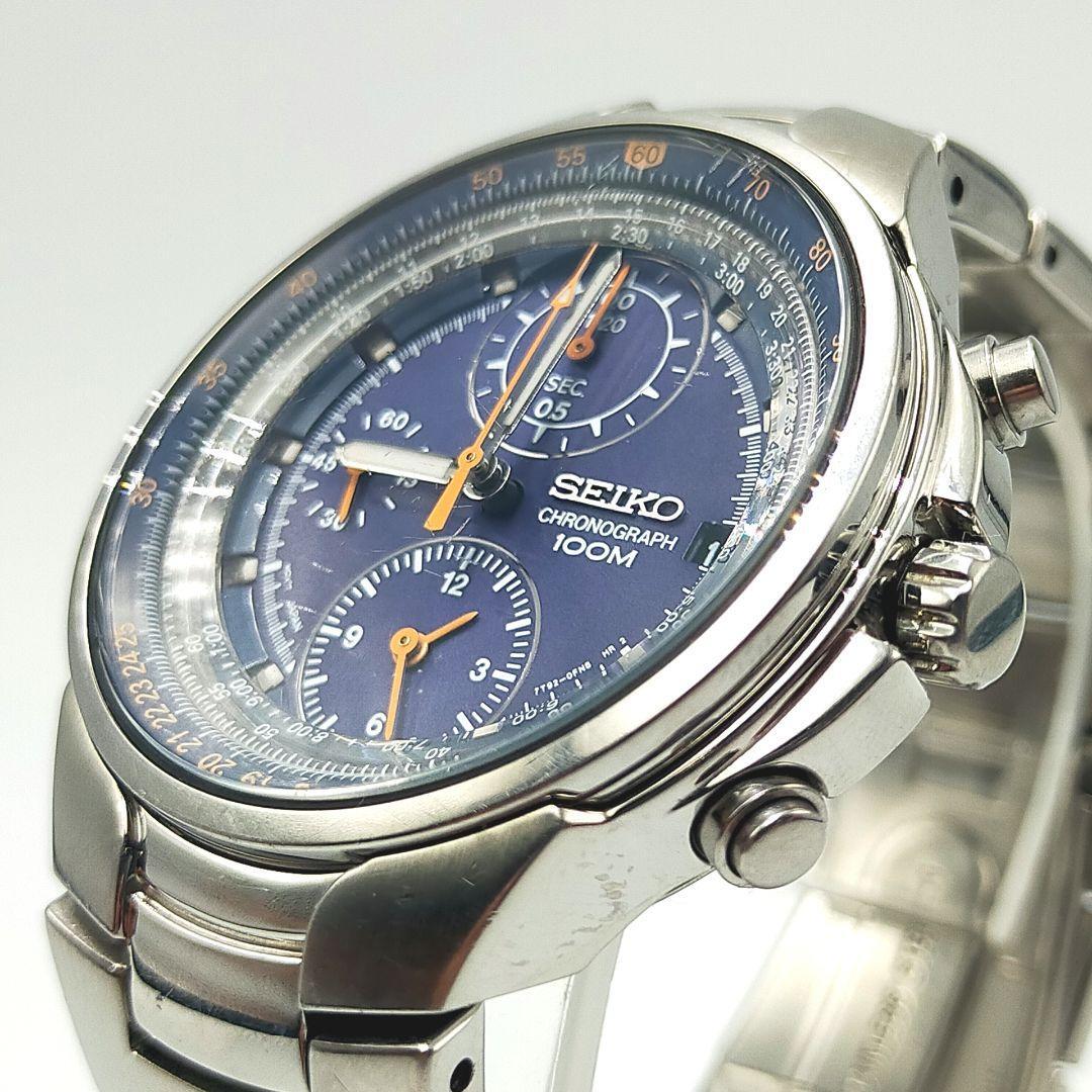 【電池新品】希少セイコー パイロットクロノグラフ 7T92 青文字盤 即発送