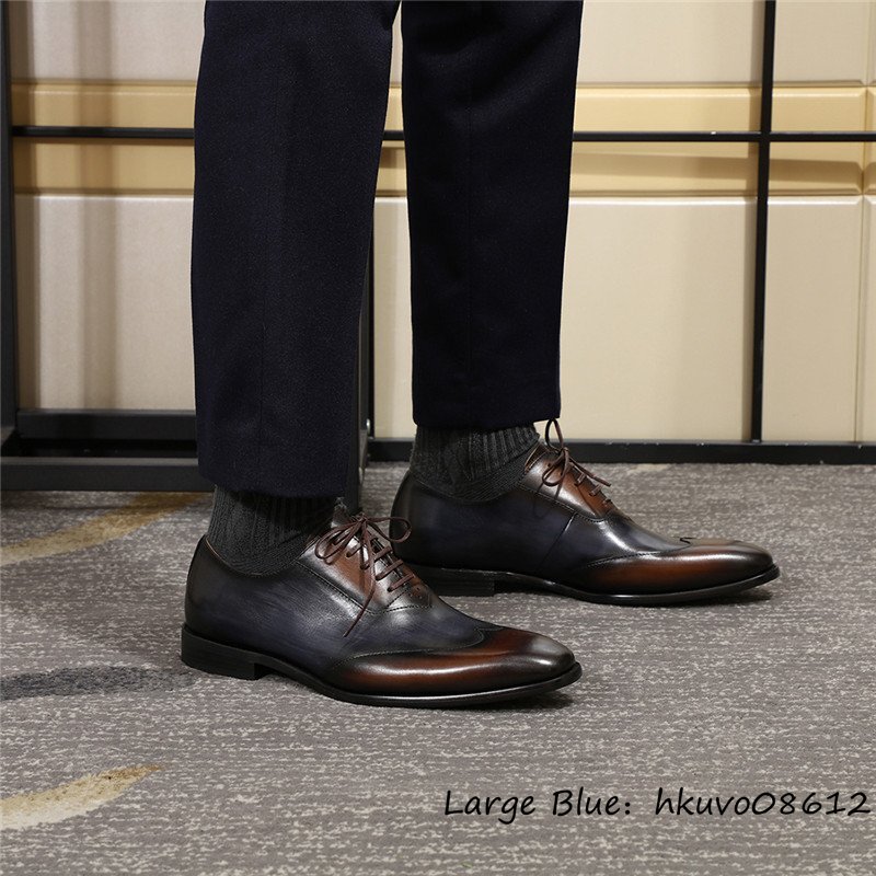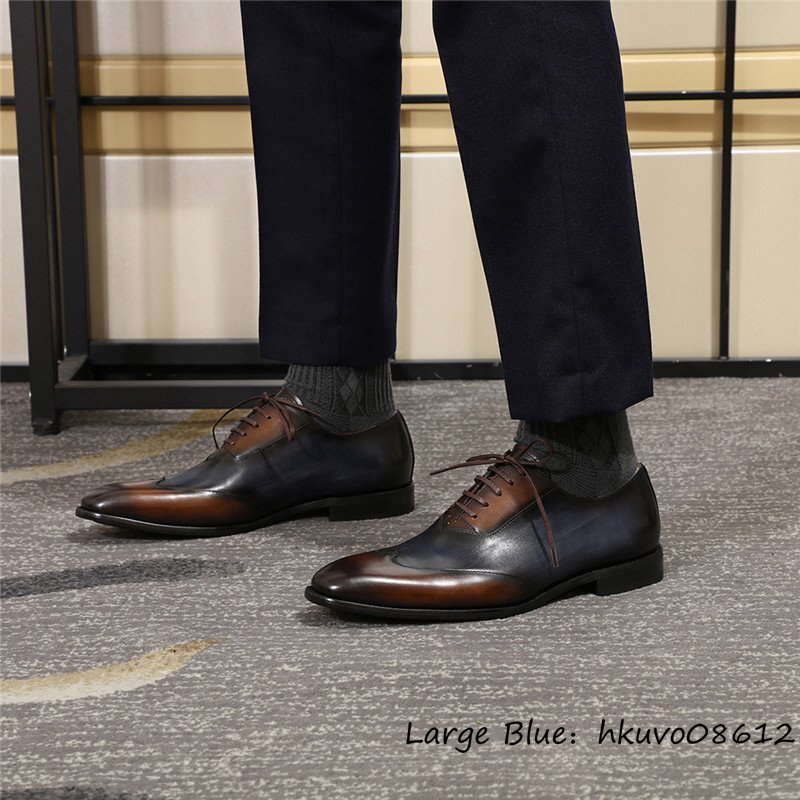 入手困難■メンズシューズ 超希少 切替 レザーシューズ 本革 職人手塗り上げ ビジネスシューズ 新品 牛革 紳士靴 革靴 フォーマル 24.5cm