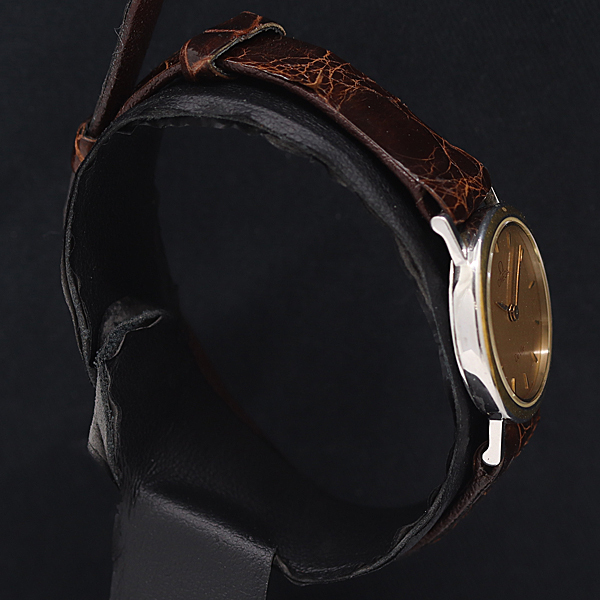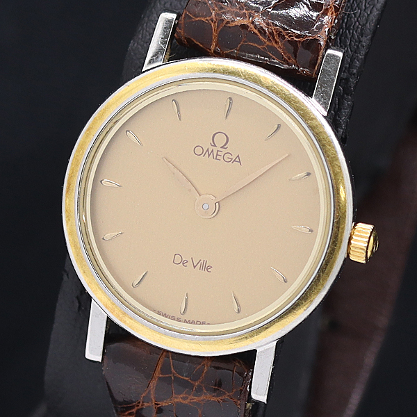 1円 稼働 オメガ デビル ラウンド QZ ゴールド文字盤 レディース腕時計 0056100 11MGT MST