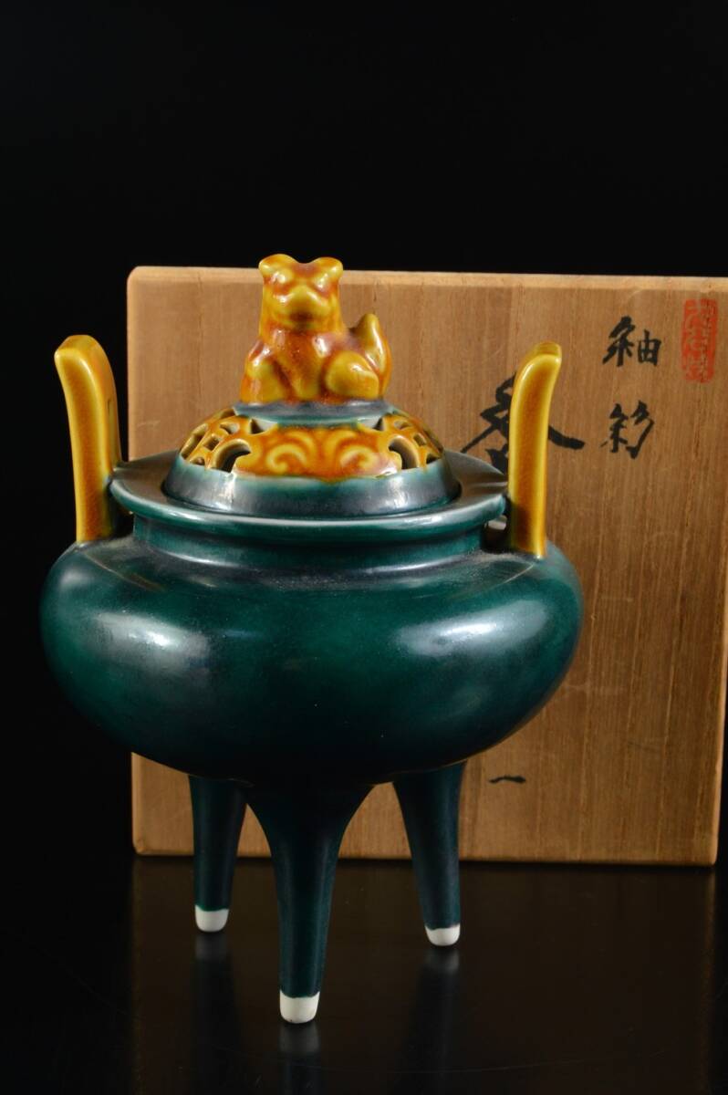 | 商品名 | 【雲】某有名資産家買取品 九谷隆 緑釉獅子摘三足香炉 在銘 共箱 古美術品(香道具茶道具) H7461 |
