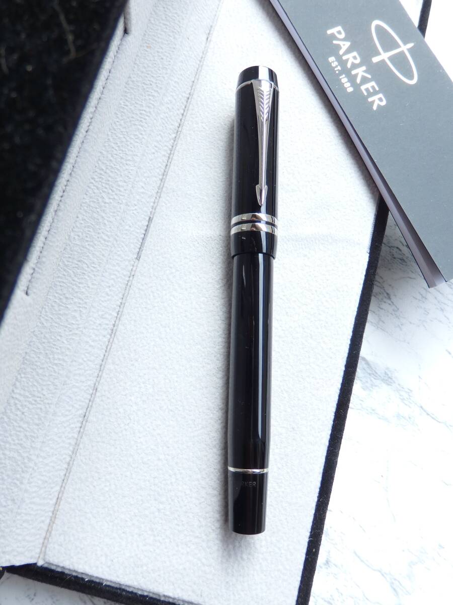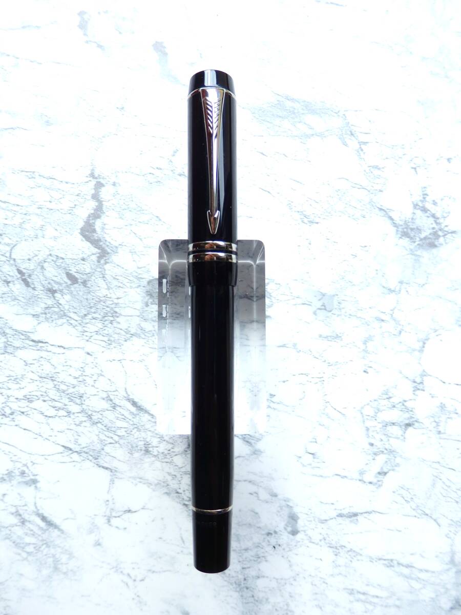 ◆【ほぼ未使用】【送料440円】パーカー デュオフォールド インターナショナル ブラックST 万年筆 ペン先:18K750ソリッドゴールド F