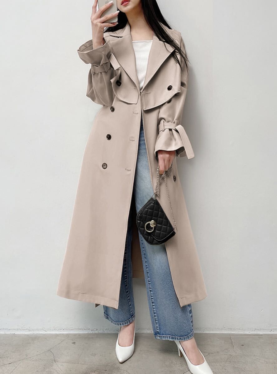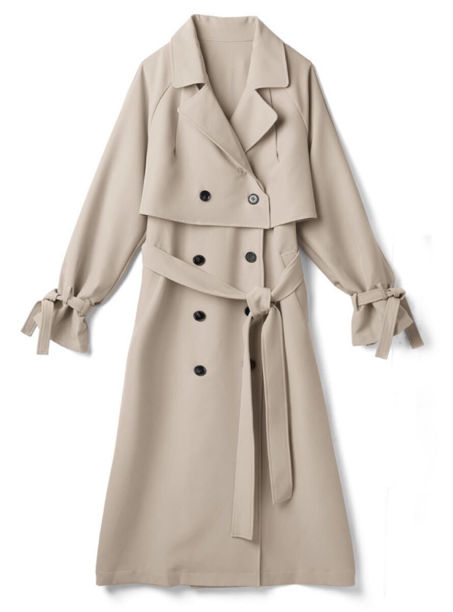 ベーシックなルックスながら、ケープが取り外し可能でアレンジが楽しめるトレンチコート。