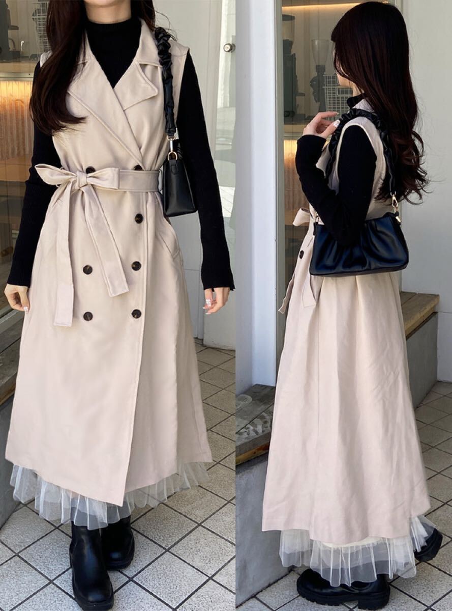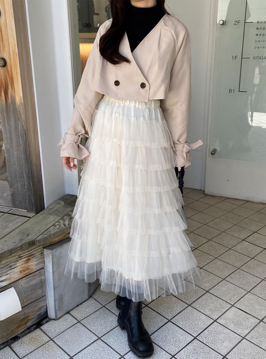 ショート丈のケープや、ジレ単品でも使えるのでロングシーズン使える。