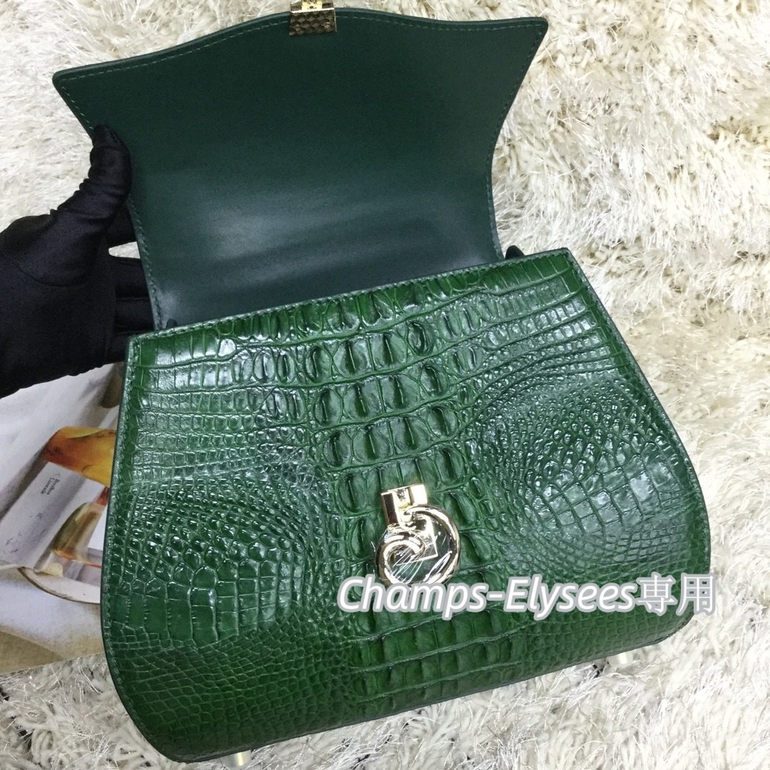 幸運アップ 特大コブ レディースバッグ ハンドバッグ 高級鰐革 骨革 純水染 緑 クロコダイルレザー 肩掛けバッグ