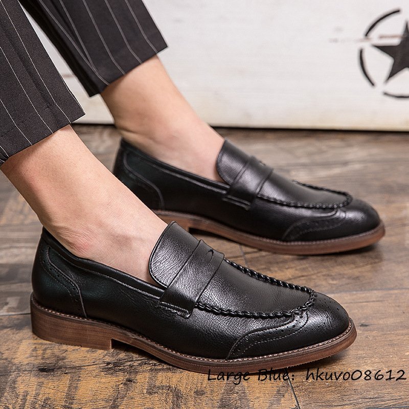 新品特売■ローファー スリッポン メンズ 職人手作り レザーシューズ ビジネスシューズ イギリス風 革靴 高級牛革 通勤 ブラック 27.0cm