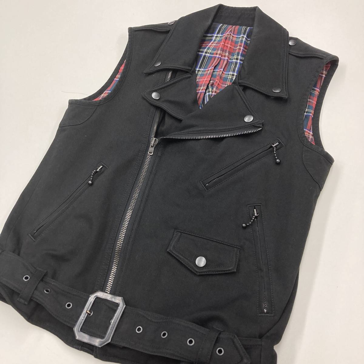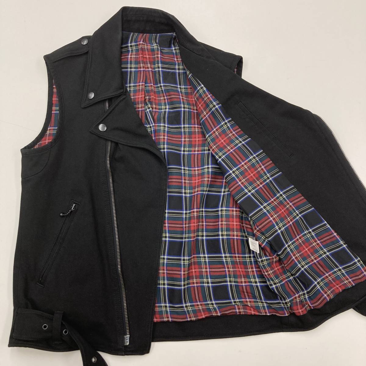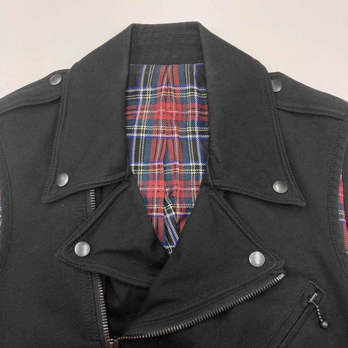 2005SS NumberNine エミリー期 ライダース ベスト チェック ブラック 黒 2サイズ ナンバーナイン ブルゾン 本人期 archive 4010211