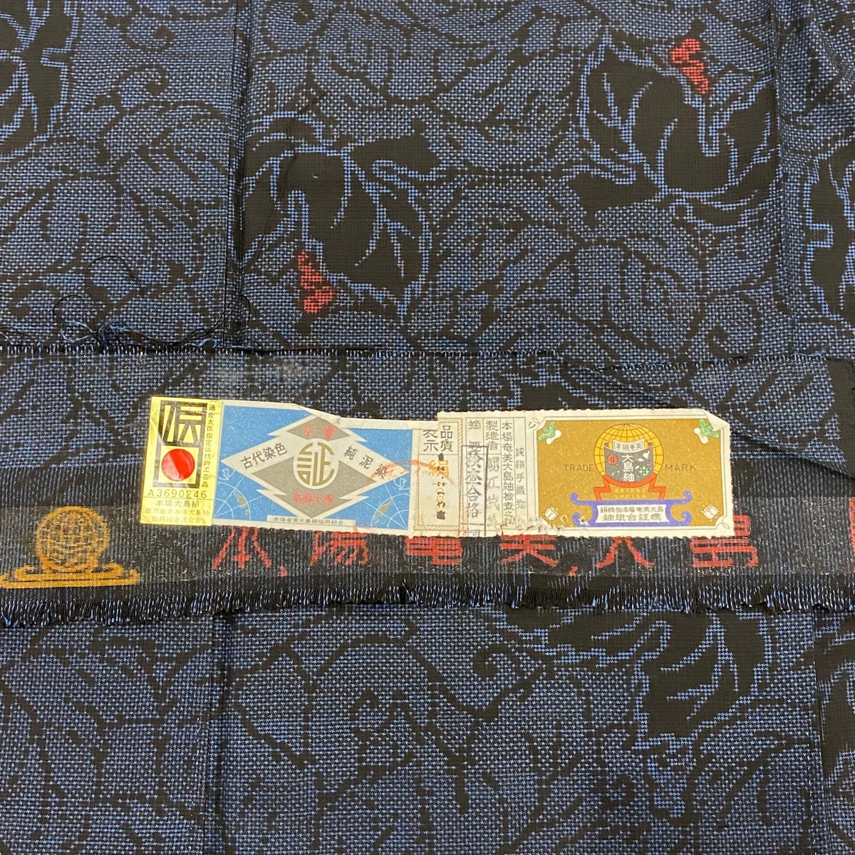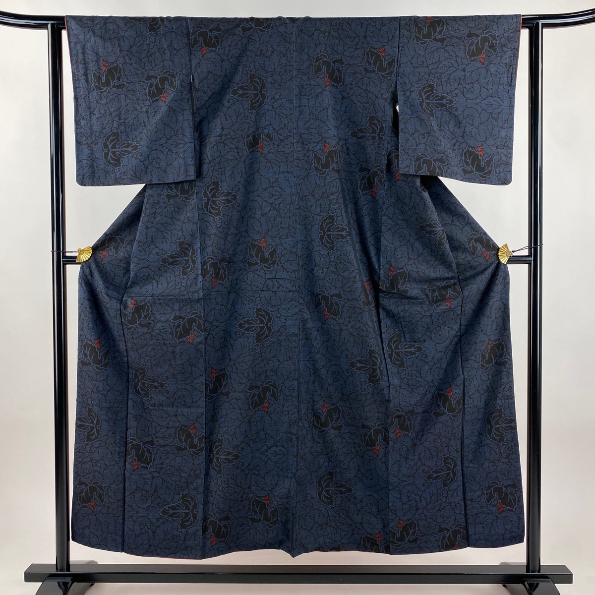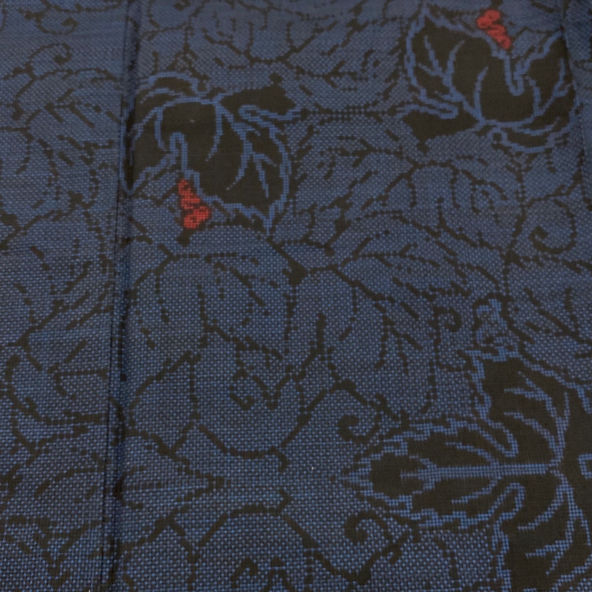 | 大島紬 美品 秀品 証紙 純泥染 葉 実 紺色 袷 身丈154 裄丈62.5 S 正絹 【中古】 |