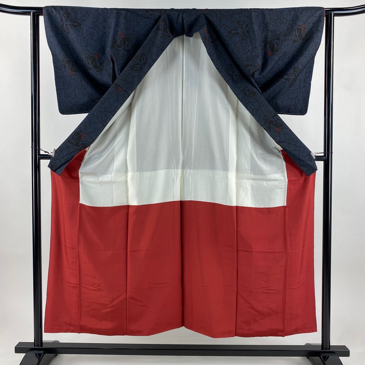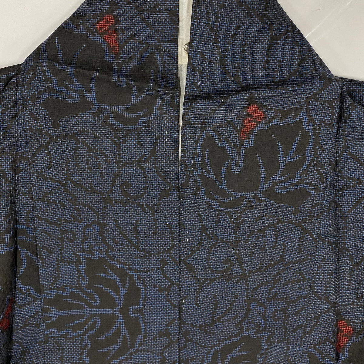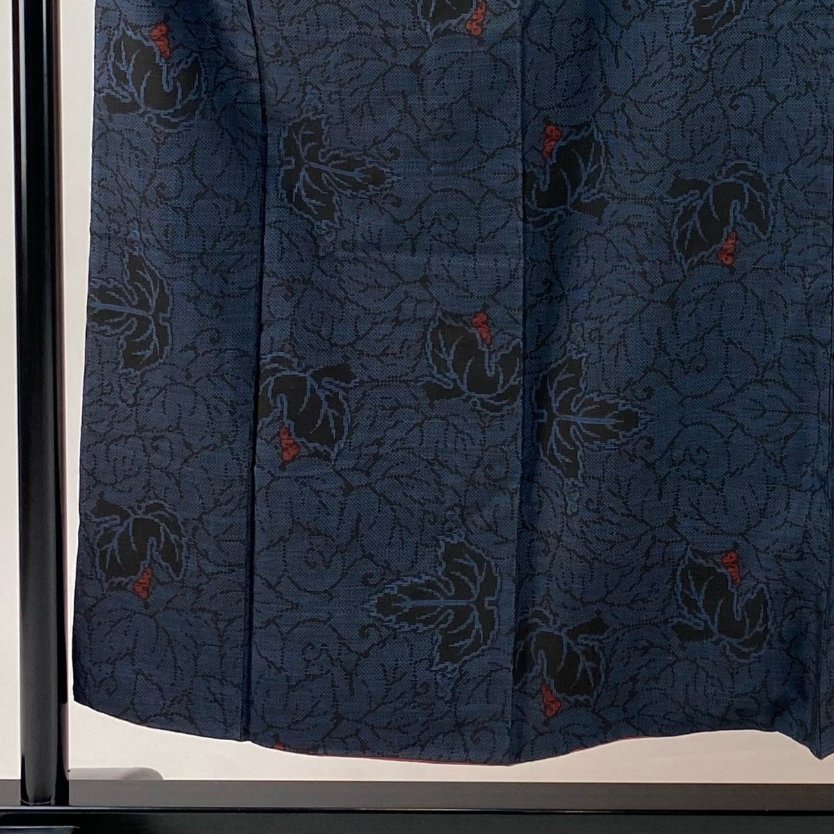 | 大島紬 美品 秀品 証紙 純泥染 葉 実 紺色 袷 身丈154 裄丈62.5 S 正絹 【中古】 |