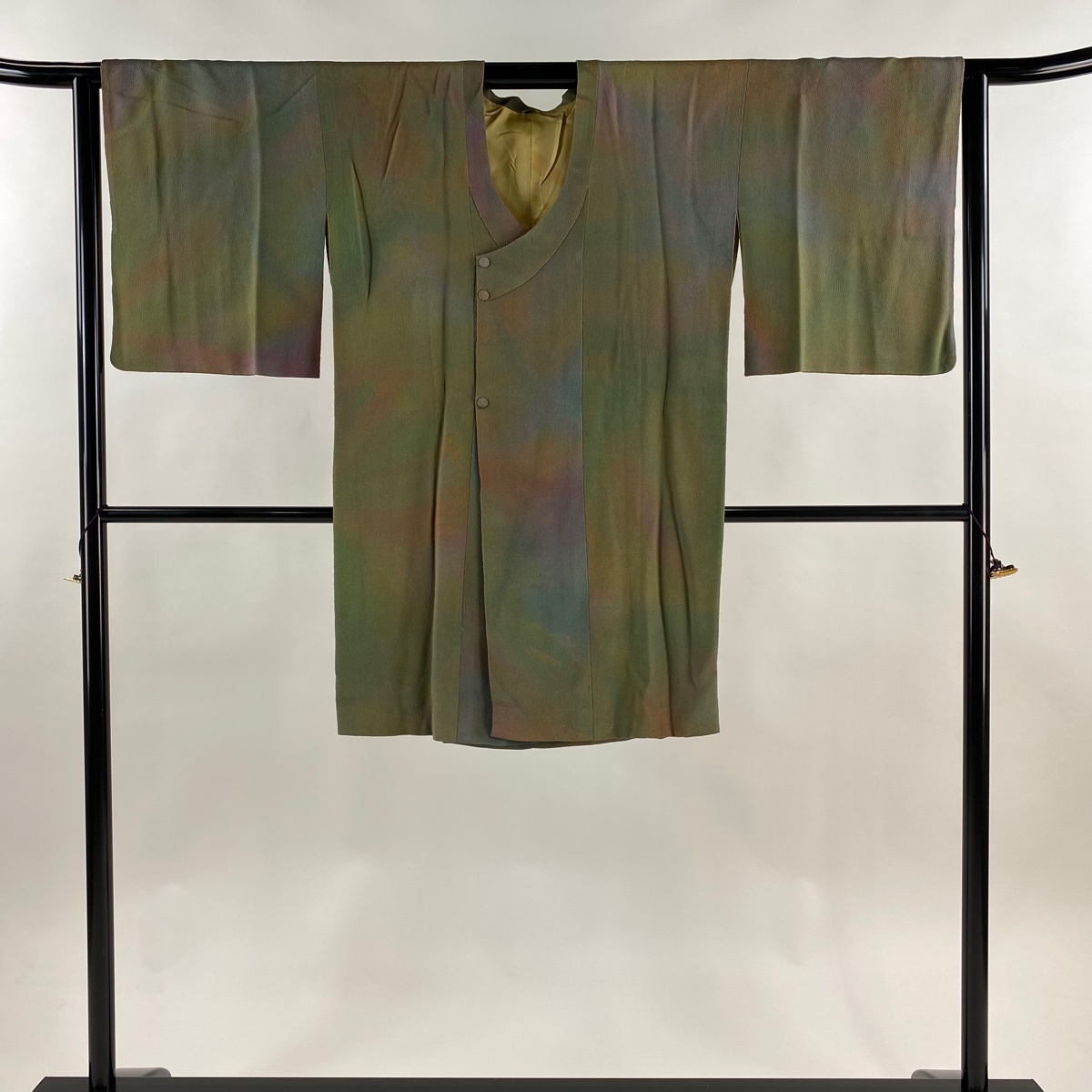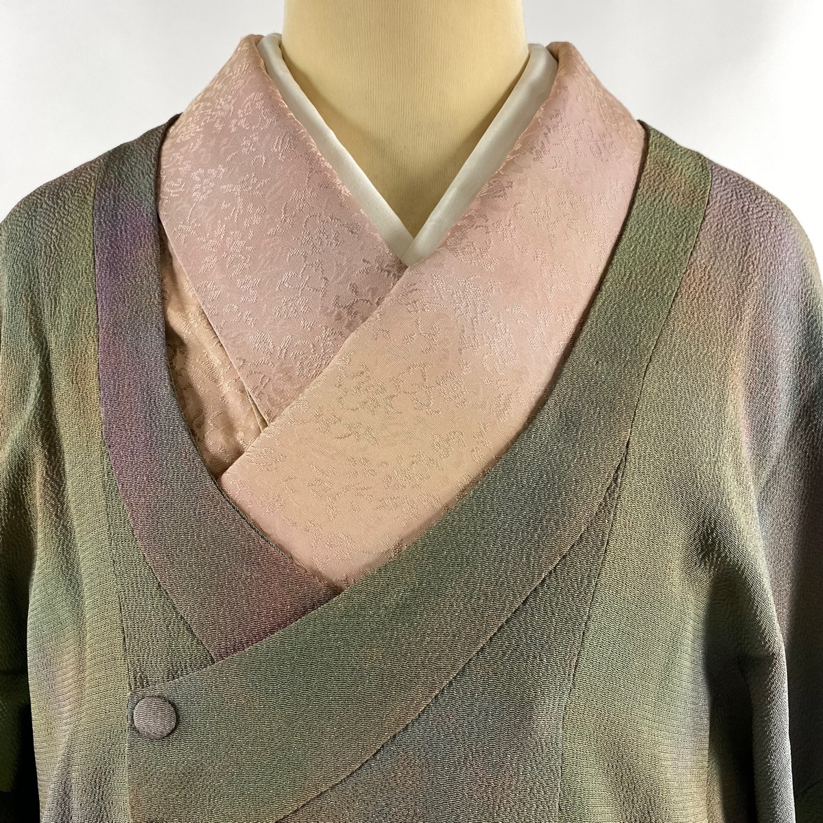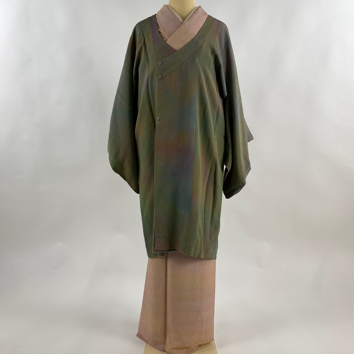 | 道行 秀品 和装コート 千代田衿 ぼかし ちりめん 茶緑色 身丈100 裄丈63 S 正絹 【中古】 |