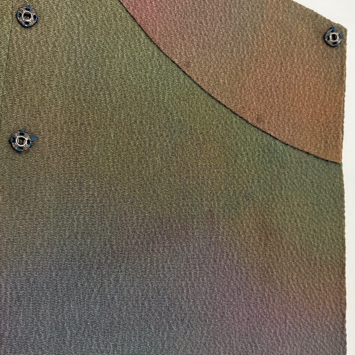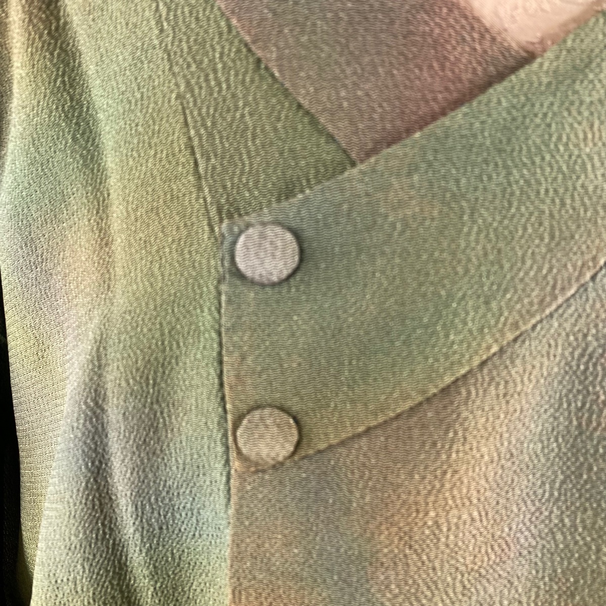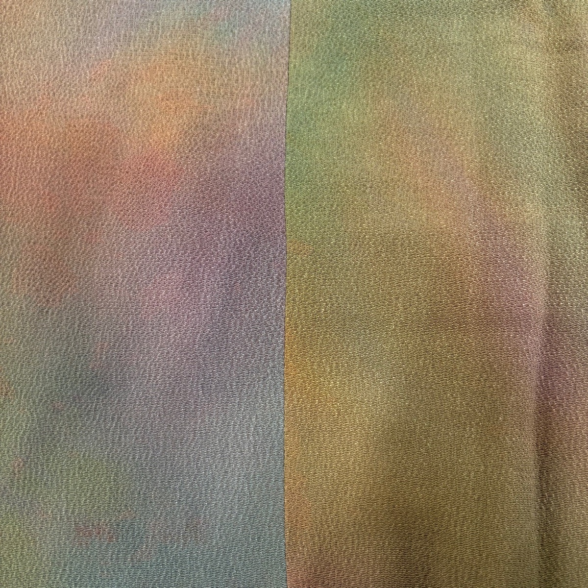 | 道行 秀品 和装コート 千代田衿 ぼかし ちりめん 茶緑色 身丈100 裄丈63 S 正絹 【中古】 |