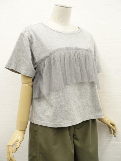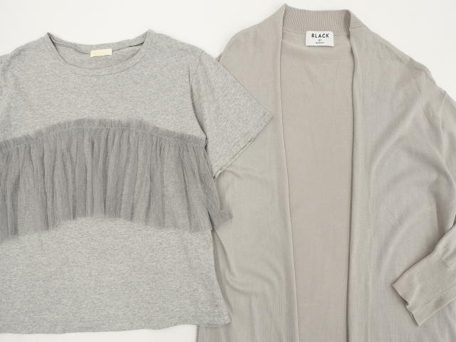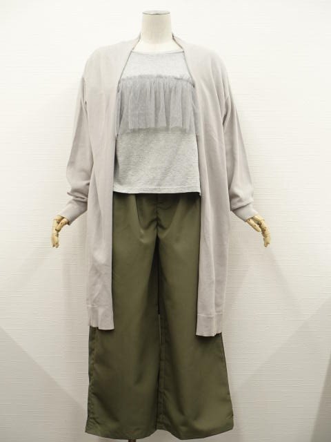 長袖ニットトッパーカーディガン+半袖カットソー+ワイドパンツ コーディネート上下3点セット L相当 グレー/ライトグレー杢/グリーンカーキー ガーリー・カジュアル系 20代~