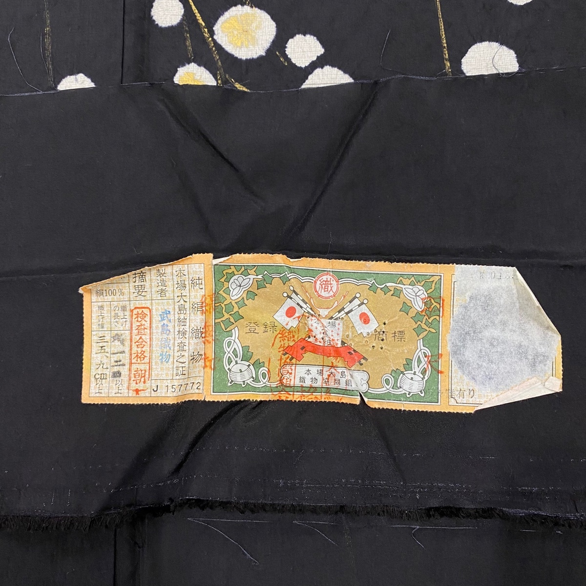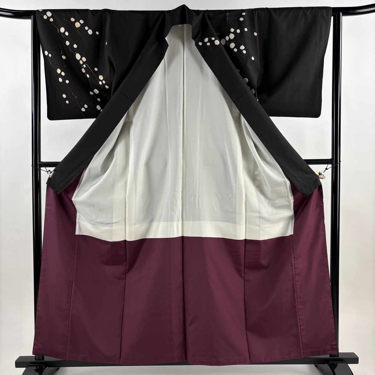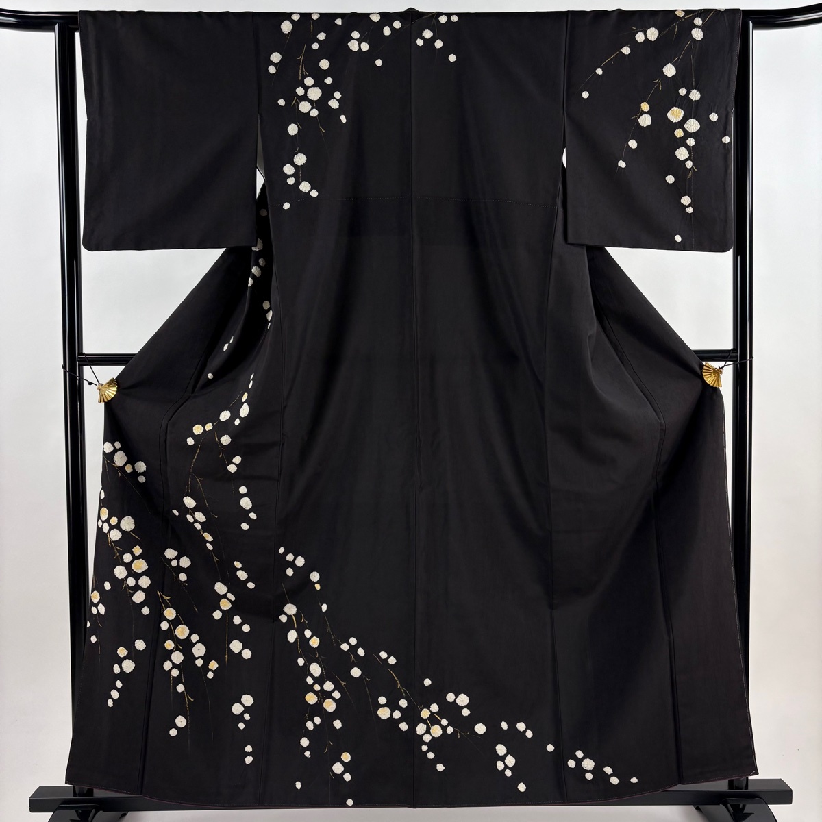 | 訪問着 秀品 証紙 大島紬地 枝垂梅 金彩 絞り 焦茶色 袷 身丈159.5 裄丈64.5 M 正絹 【中古】 |