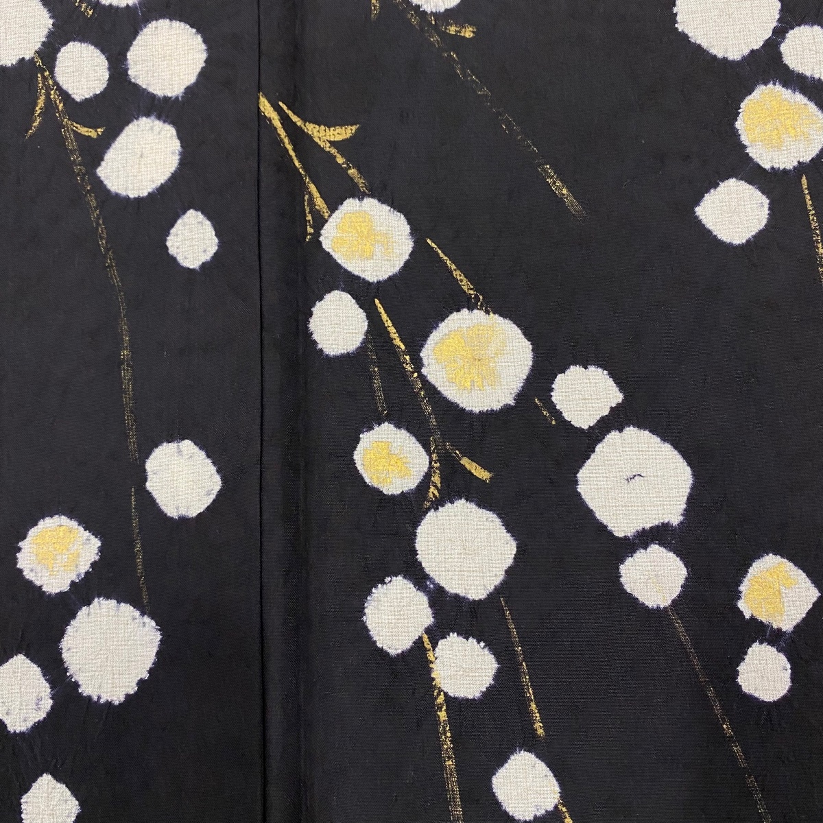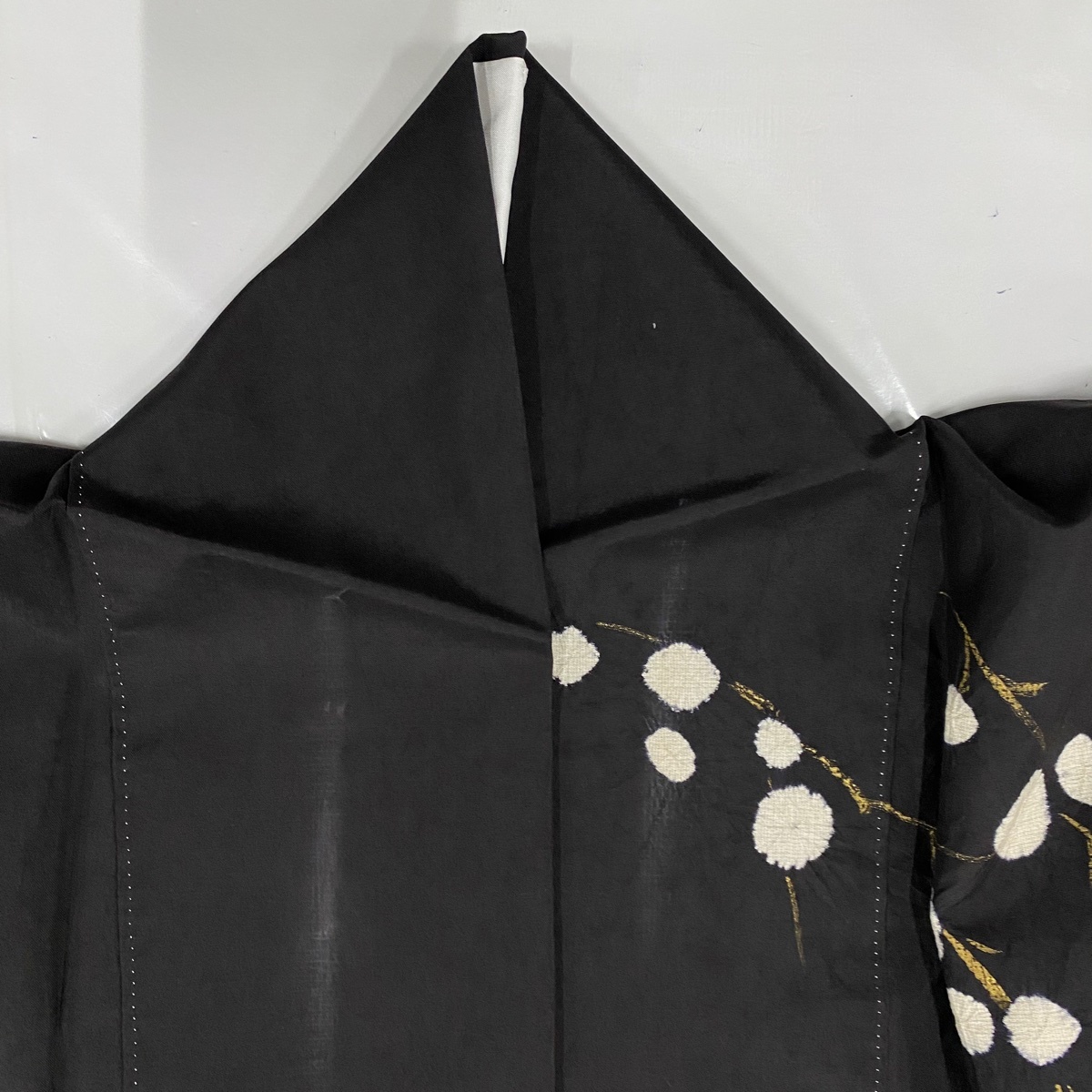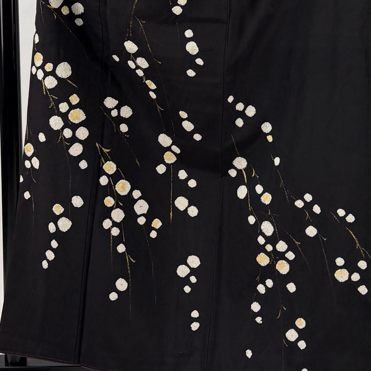 | 訪問着 秀品 証紙 大島紬地 枝垂梅 金彩 絞り 焦茶色 袷 身丈159.5 裄丈64.5 M 正絹 【中古】 |