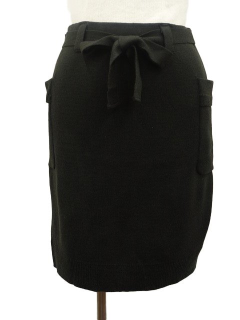 洗えるひざ丈 ニットストレートスカート M ダークグリーン