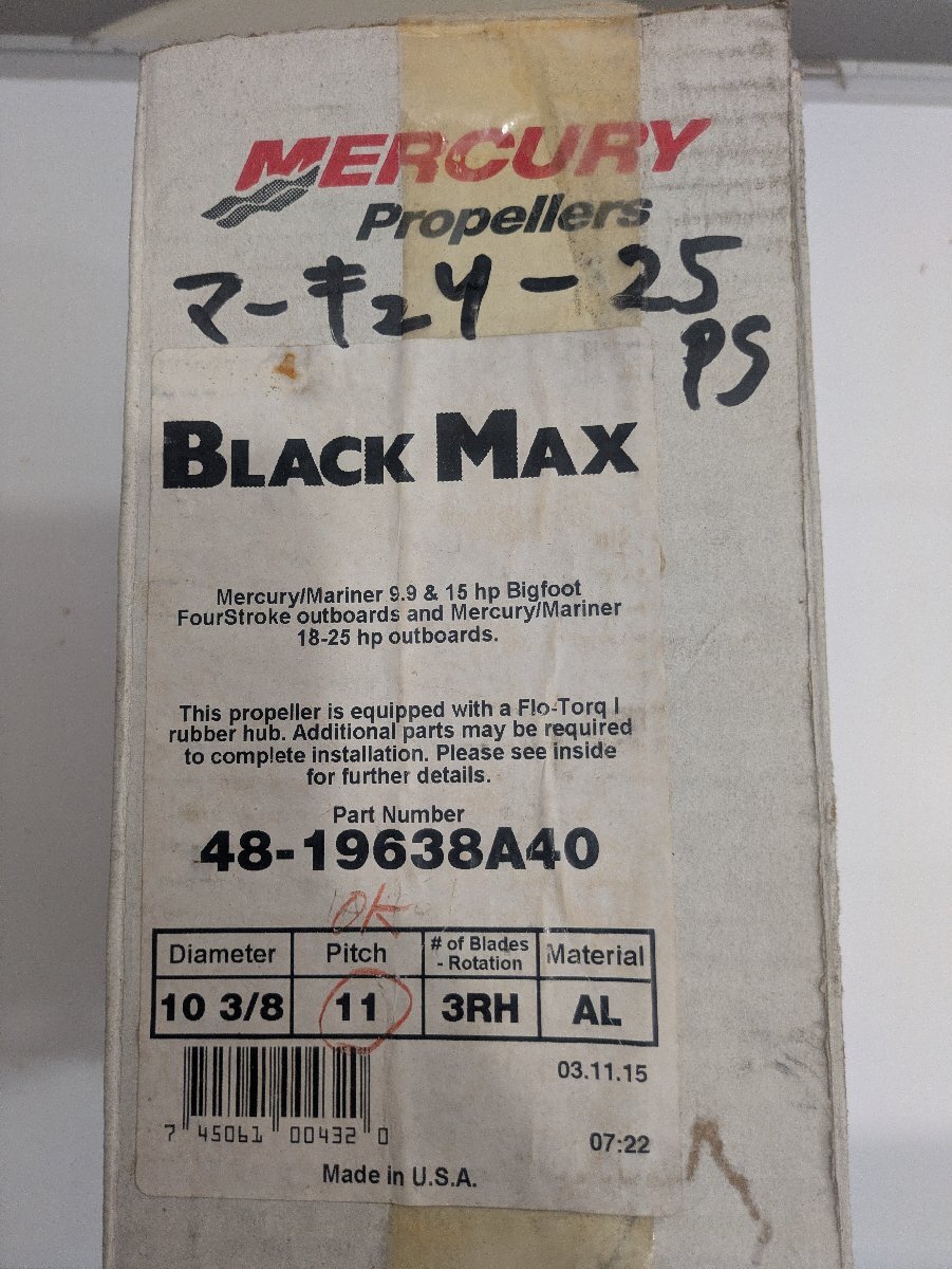 【マーキュリー/MERCURY】プロペラ 新品 部品番号48-19638A40
