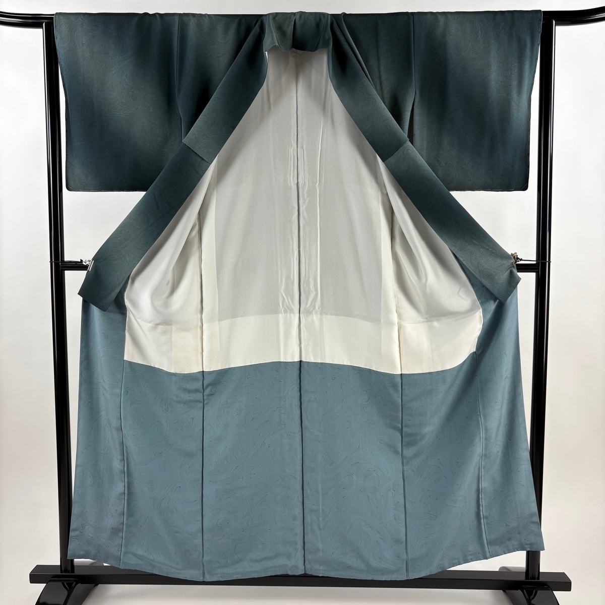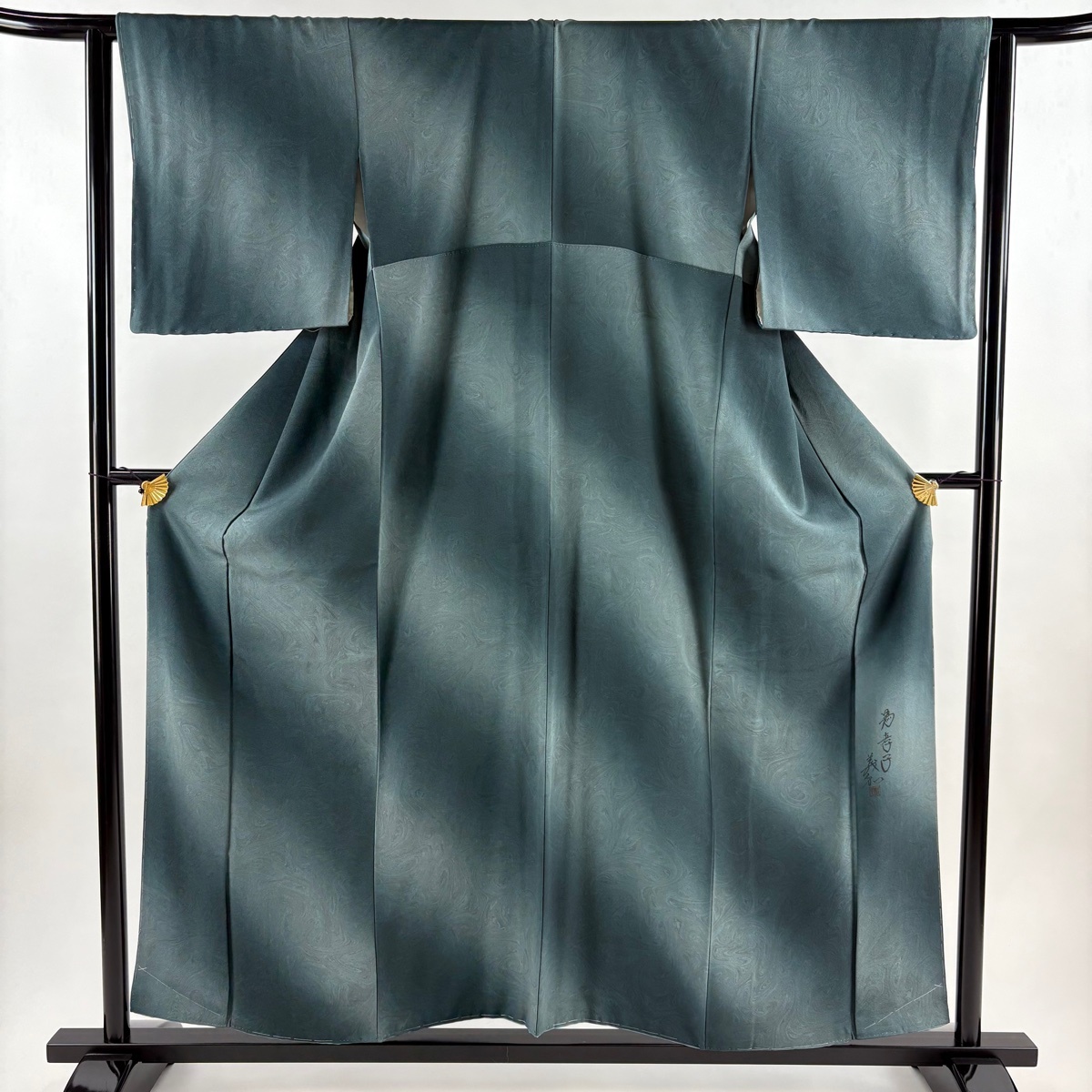 | 小紋 美品 名品 落款 墨流し ぼかし 深緑 袷 身丈157 裄丈63 S 正絹 【中古】 |