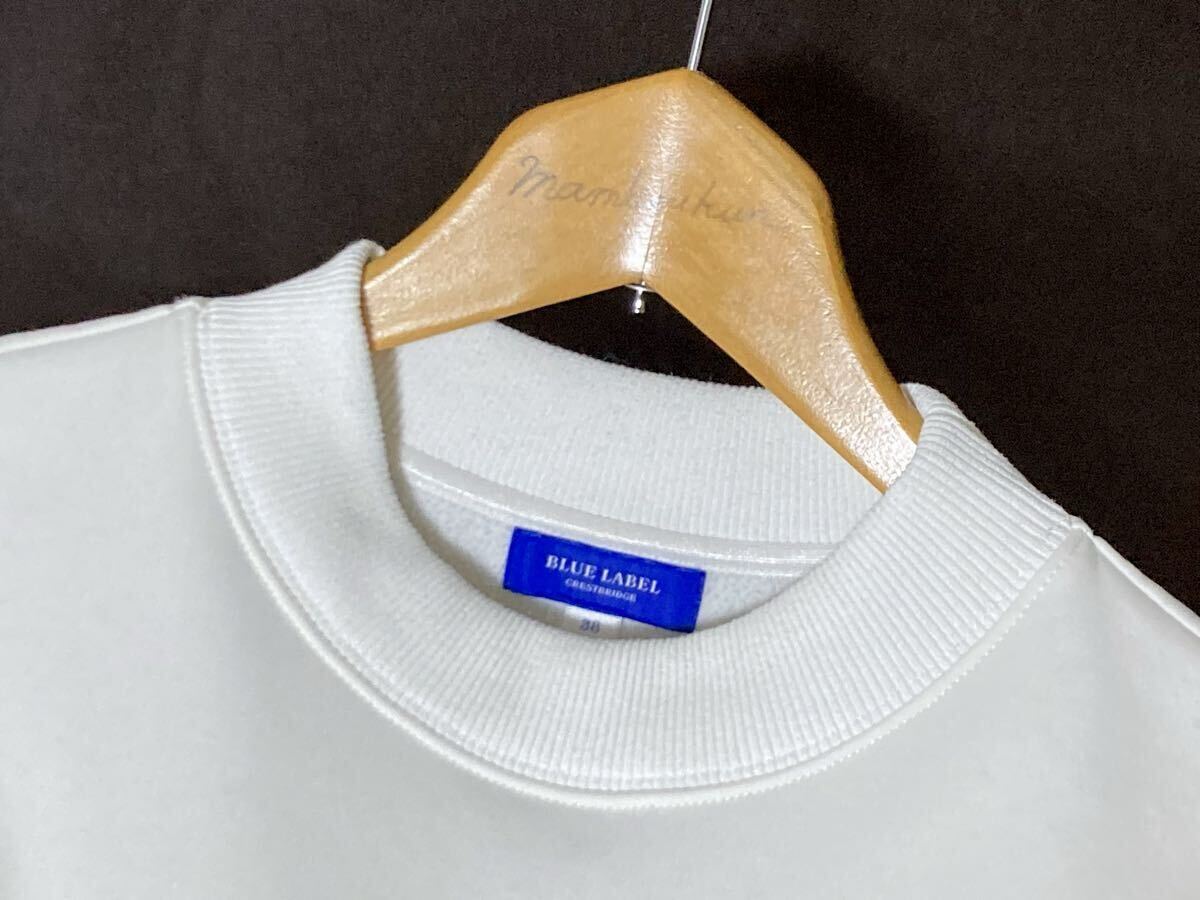 美品 ブルーレーベルクレストブリッジ レース切替えのお袖に飾りベルトがおしゃれな裏起毛のプルオーバー 38 送料230円♪