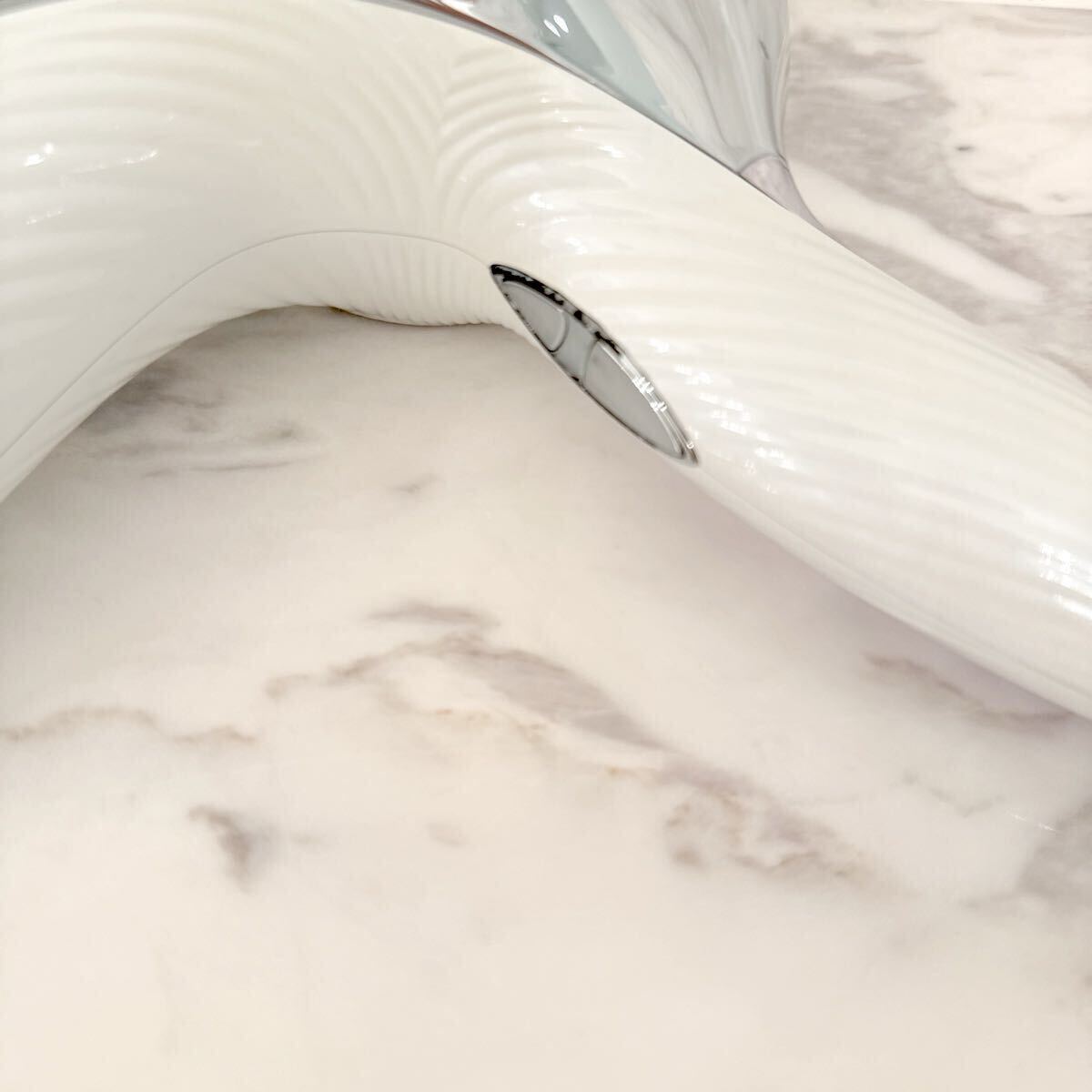 従来のドライヤーのイメージを覆す美しいオブジェのようなスタンド&ドライヤーになります。