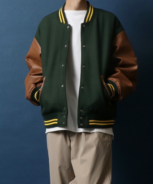 参考商品名:ANPAS Melton Oversize Varsity Jacket/ANPAS 別注 メルトン オーバーサイズ 袖フェイクレザー スタジャン