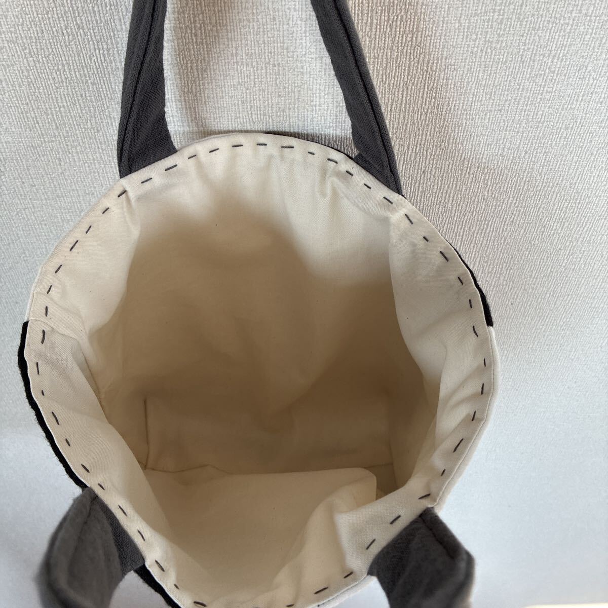 バッグ上部の内側は裏布が浮かないように刺繍ステッチしてます。
