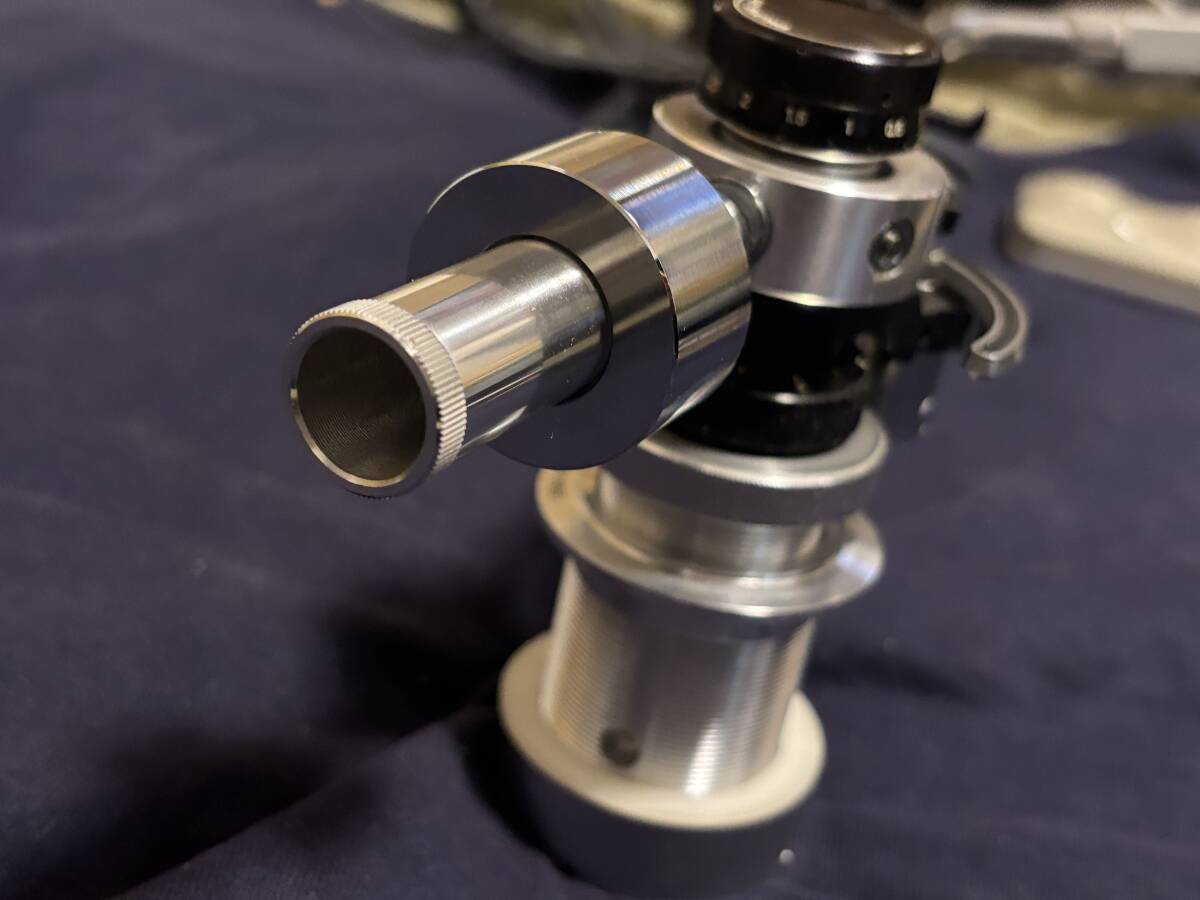 | 軸受構造には仮想一点支持構造のニュージンバルサポート方式を採用しています。 この方式では4個のベアリングを仮想中心点から等距離に配置した構造となっています。このためアームを動かした時に各ベアリングにかかる力と回転角度が等しくなり、ワンポイントサポートと等価な性能を実現しています。 工作にはミクロン精度のカメラ技術をそのまま導入し、さらに全てのベアリングを同一部品に固定する事で高感度と優れた耐久性を得ています。 |
