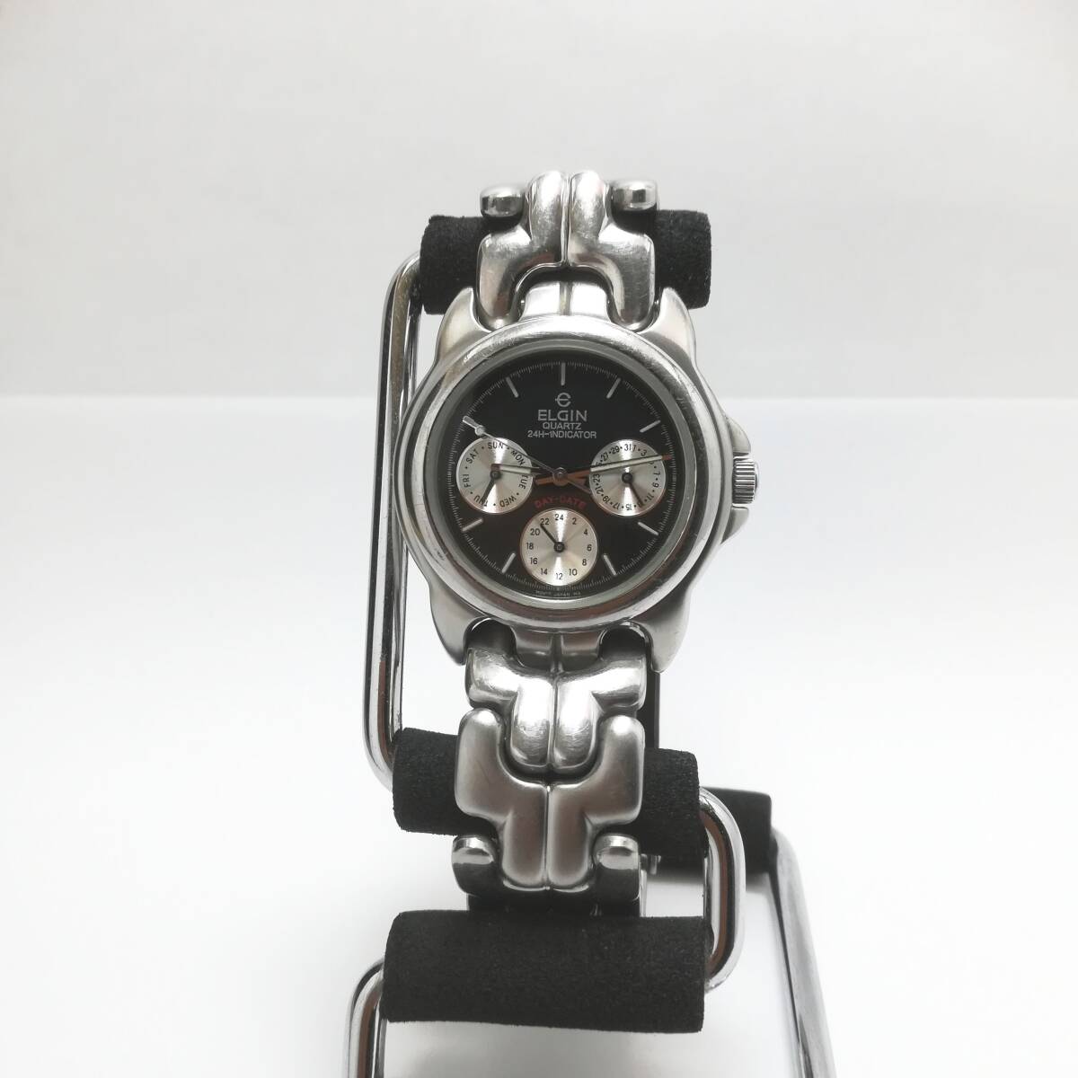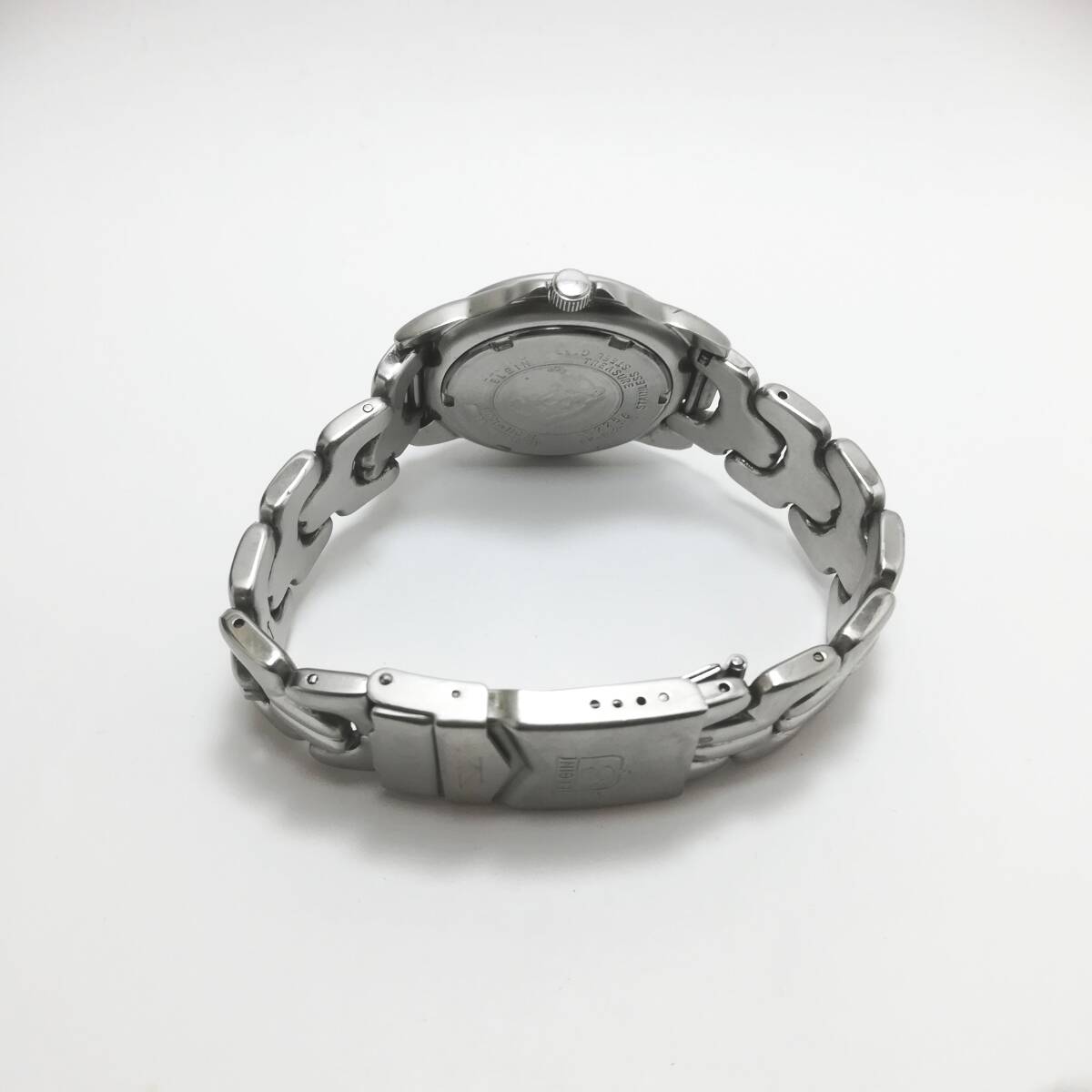 | 商品 ELGIN エルジン マルチカレンダー/メンズ腕時計/USEDです。 サイズ ケース横幅 約33mm (リューズ含まず) ベルトラグ幅 約18mm 腕周り 約17.5cm 状態 稼働中です。 ガラス風防に目立った傷はありません。 ※写真で判断をお願いします。 リューズでの時間調整、カレンダー調整OK。 電池は出品時に新品に交換済み。 ※マルチカレンダーの曜日切り替えは、 基本的にリューズ一段引きでは行えません。 午後8時から午前4時辺り(機種によりまちまち)まで、 針を往復して切り替えてください。 裏蓋パッキンに時計用シリコンを塗布していますが、 防水テストなどは行っていません。 ベルトに関しましては、見た目のみで状態はチェックしていません。 (新品交換済みのベルト除く) 発送前に電池交換した場合、まれに動かないことがあります。 その場合は取引終了となりますがご容赦ください。 ※正面から撮った写真は文字盤や針などにカメラのレンズが写り込んで、 黒く見える場合があります。他の写真も合わせてご覧ください。 ※基本的に土日は発送できません。 付属品:なし サイズに関しては素人計測ですので、誤差があることをご了承ください。 メンズ・レディースはあくまで目安ですので、サイズでご判断ください。 あくまで中古品ですので神経質な方はご遠慮ください。 ノークレーム、ノーリターンでお願いします。 | |