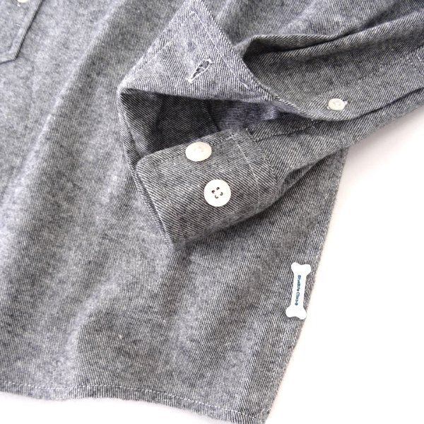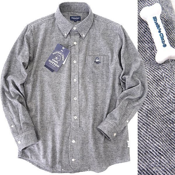 【Sheltie Club】 〈湘南の海〉をテーマとしたブランドコンセプトに沿って、マリンテイストを味付けしたシンプルなスタイルを信条とし、ラフで、気取らず、気張らない、ややゆったりとした着こなしを提案します。 優しい肌当たりと暖かな着心地を兼ね備えたビエラ素材を使用したボタンダウンシャツ。 最大の特徴は前裾から大きくカーブした1940年代の英国士官のシャツをベースとしたデザイン。 ポケット部分にブランドロゴを刺繍、左裾の側面に骨をモチーフとしたビスを装飾しており、細部にまでこだわった仕上がりとなっています。 |