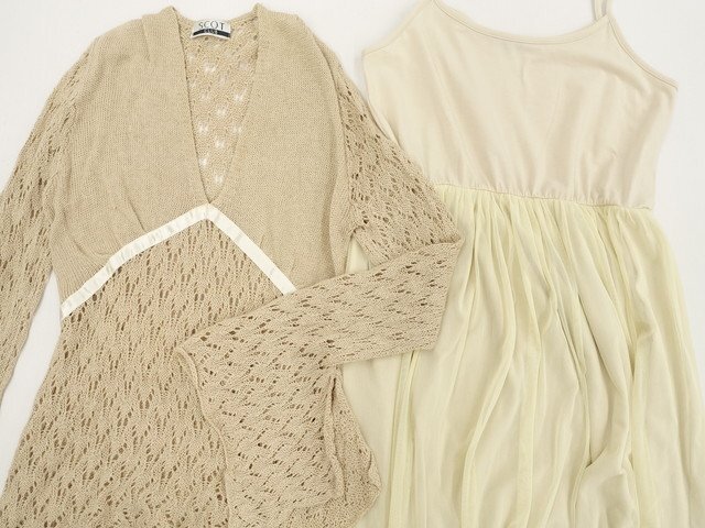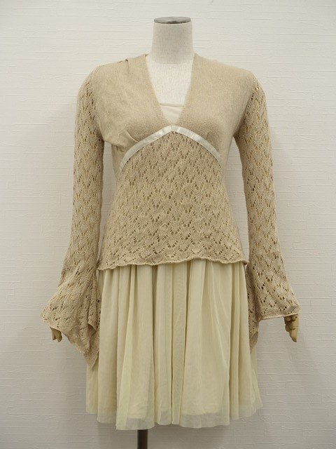 長袖ニットカットソー+ひざ丈レースキャミソールワンピース コーディネート2点セット M相当 べージュ系/ベージュ×クリーム ガーリー系 20代