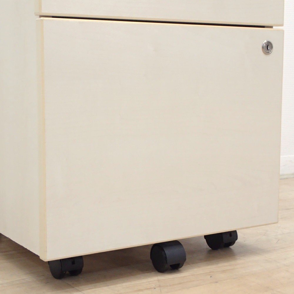 オフィスや在宅ワーク環境にぴったりのプラス 3段ワゴンが入荷いたしました。 シンプルで落ち着いたナチュラルカラーがどんなデスクにも調和し、空間を明るくやわらかな印象に仕上げます。 上段・中段は文具や小物、書類の整理に最適な浅型引き出し、下段はA4ファイルを縦に収納できる深型仕様。 下段には転倒防止キャスターが装備されており、引き出しを全開にしても安定感を保ち、安全に使用できます。 移動に便利なキャスター付きで、掃除やレイアウト変更も簡単。 シンプルながらも細部まで配慮された設計が魅力です。 オフィスの書類整理はもちろん、自宅のワークスペースにもおすすめの収納ワゴンです 実用性とデザイン性を兼ね備えた一台で、デスク周りをすっきり整えましょう。 |