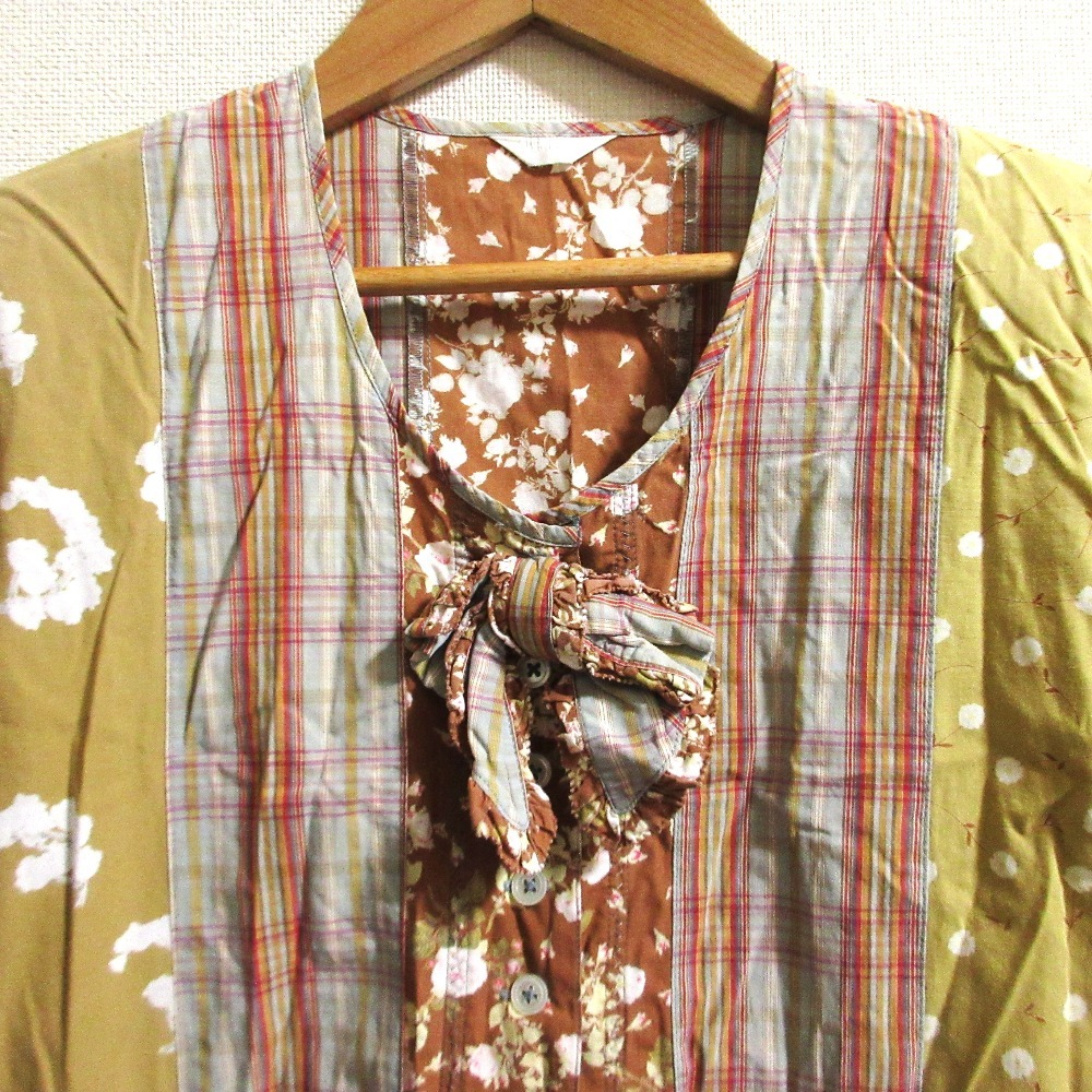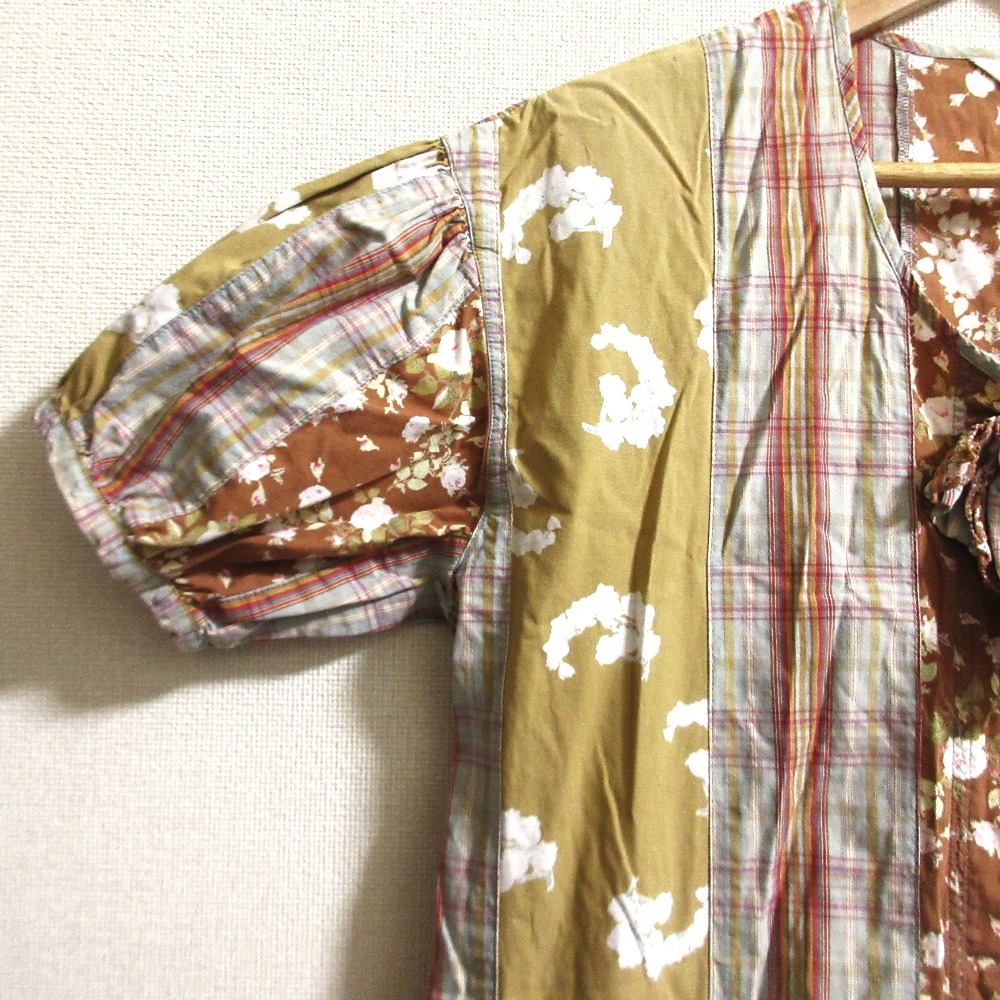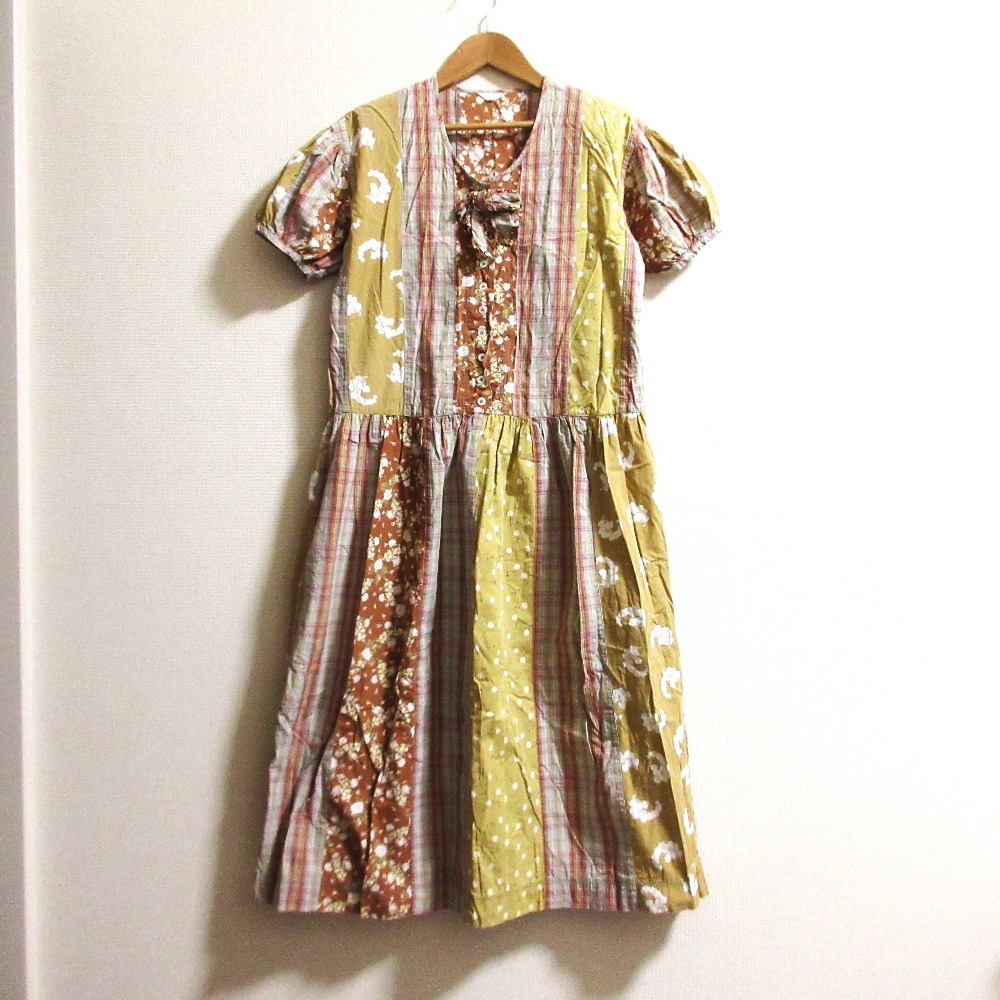 良品 PINK HOUSE ピンクハウス フラワープリント チェック ワンピース マルチカラー