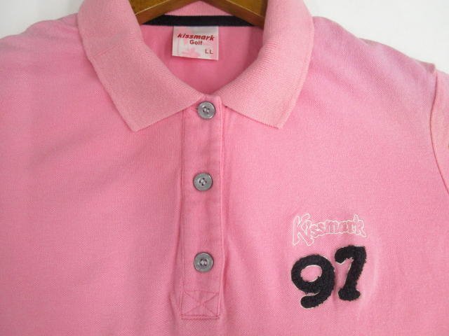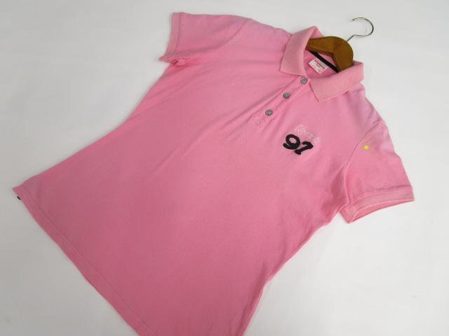 半袖 洗えるポロシャツ スポーツ ゴルフ LL ピンク地 ネイビー 数字&ホワイト 英字 【メール便可】
