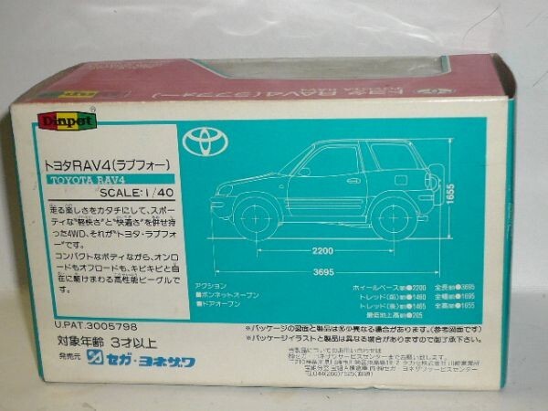 ☆1/40 Daipet トヨタ RAV4 青です。箱が傷んでいますので、ご了承のうえ入札ください。商品の状況は写真でご判断の上、ノ-クレ-ム・ノ-リタ-ンでお願いします。保証はできませんが、定形外郵便での発送も可能です。