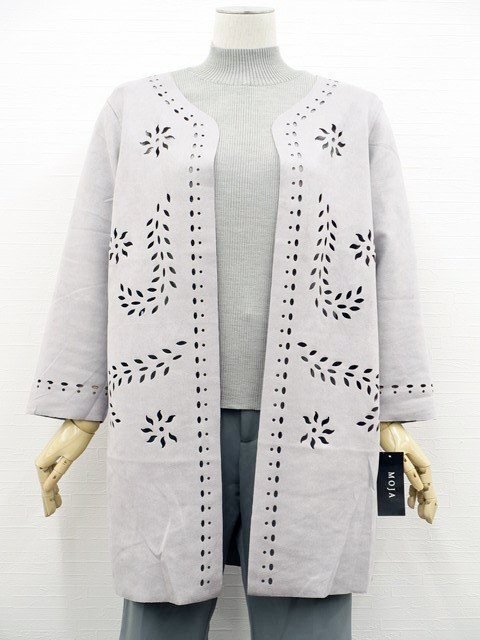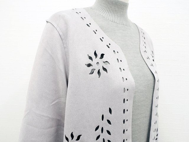 長袖 洗えるトッパーカーディガン M-L ライトグレー