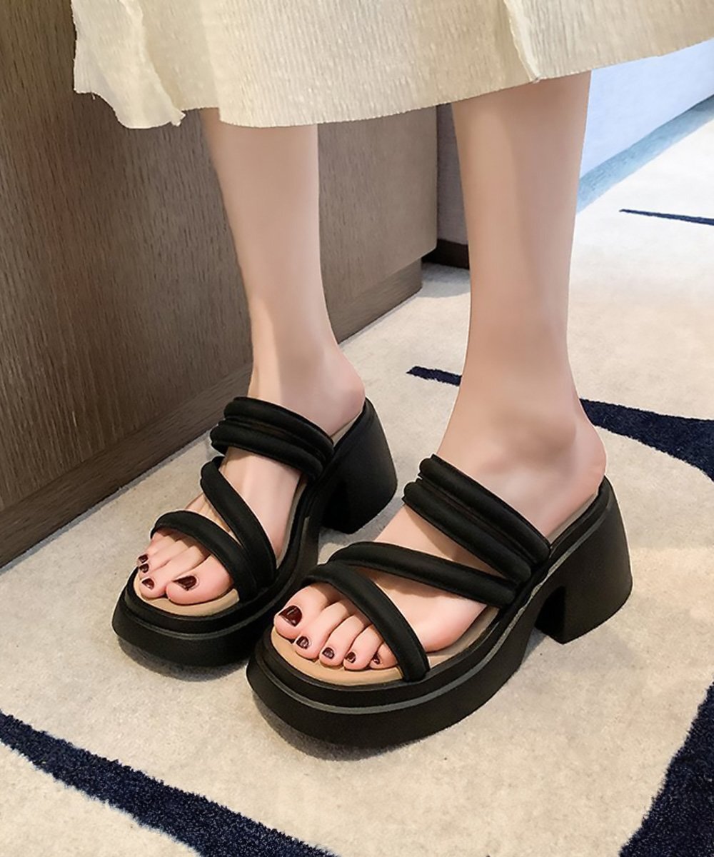 ミュールデザインでさっと履きやすい厚底サンダル。