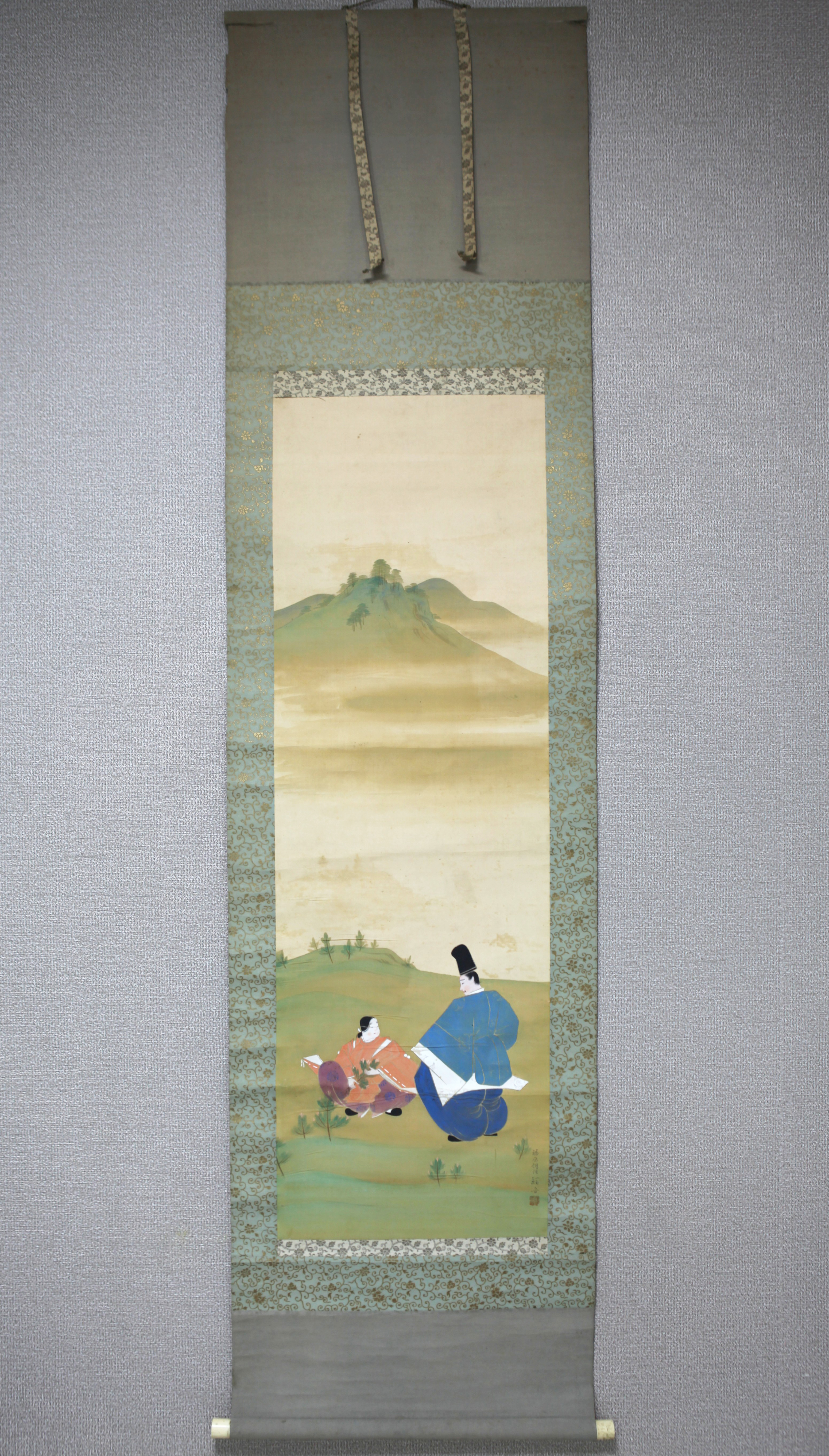 | 【真作】【風車】 小堀鞆音 「春山人物図」◎肉筆絹本◎栃木の人 川崎千虎師事 東京美術学校教授 帝国美術院会員 | ||||||||||||||||||||